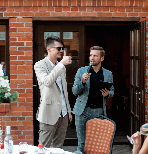 Привет! Меня зовут Андрей Астахов, мне 28 лет, я всегда развиваюсь и стараюсь продвигать Event в Калининграде. Направление ведущего для меня профессиональное хобби, мне нравиться находить общий язык с людьми и заставлять их улыбаться. Благодаря коммуникациям я открыл свой бизнес в сфере HoReCa. Начал строить дом не далеко от моря с женой. Люблю свой родной Калининград по этому никогда не перееду из него. P.s. Если только на пару дней поработать в другом регионе