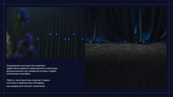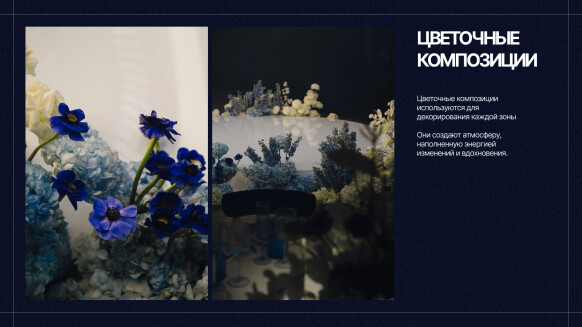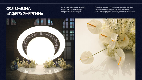 — Интегрировать уникальные элементы, которые будут визуализировать «невидимый мир» энергии, усиливая ощущения гостей через инсталляции и геометрию расстановки.