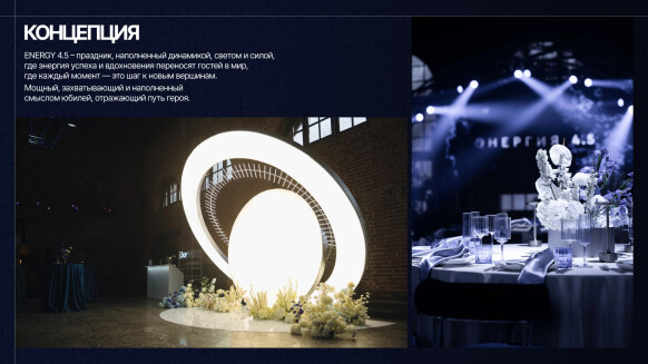 Девиз «Энергия, которая меняет мир» раскроет суть вечера, где труд и достижения именинника станут источником силы для будущих прорывов и успехов. Это будет не просто праздник, а уникальный опыт, который гости смогут увидеть, услышать и даже почувствовать.