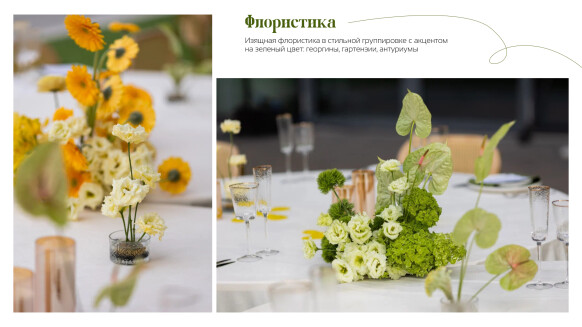 Авторская флористика и утончённые детали создают уникальный образ, гармонично вписываясь в концепцию
