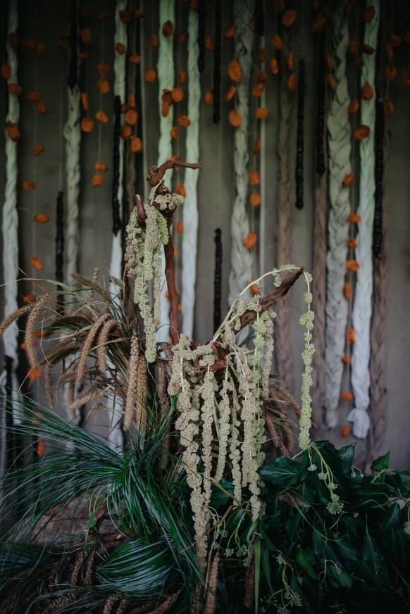 Зону церемонии , фотозону и вэлком мы объединили в одно пространство на веранде, ребятам хотелось избежать излишней торжественности, чтобы не было ни подиумов, ни роскошных арок, поэтому местом церемонии послужили 2 акцентных композиции из мха, украшенные цветами, форма и цвет покрытия пола и пуфиков.