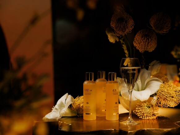 Жидкое золото, теплый сияющий свет... Каждый элемент декора - это отражение философии бренда: сочетание натуральности, элегантности и внимания к деталям.
