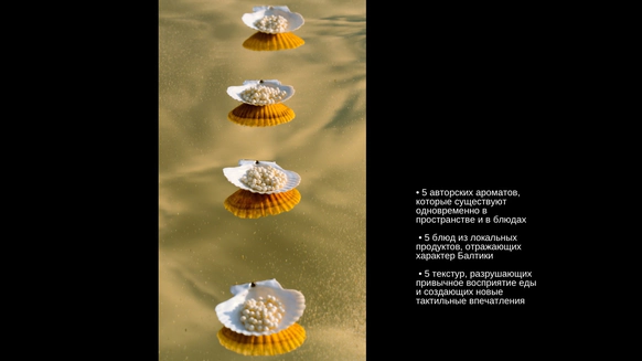 Вкусы Балтики - это современная гастрономия, как искусство. Про личность, место и момент, где открываются новые вкусы. Про утонченный диалог природы и человека. Про ужин, который запоминается не только визуально, но и на уровне ощущений. Арт-объект портал, который стал ключом, открывающим новое измерение для гостей и визуальной кульминации бренда