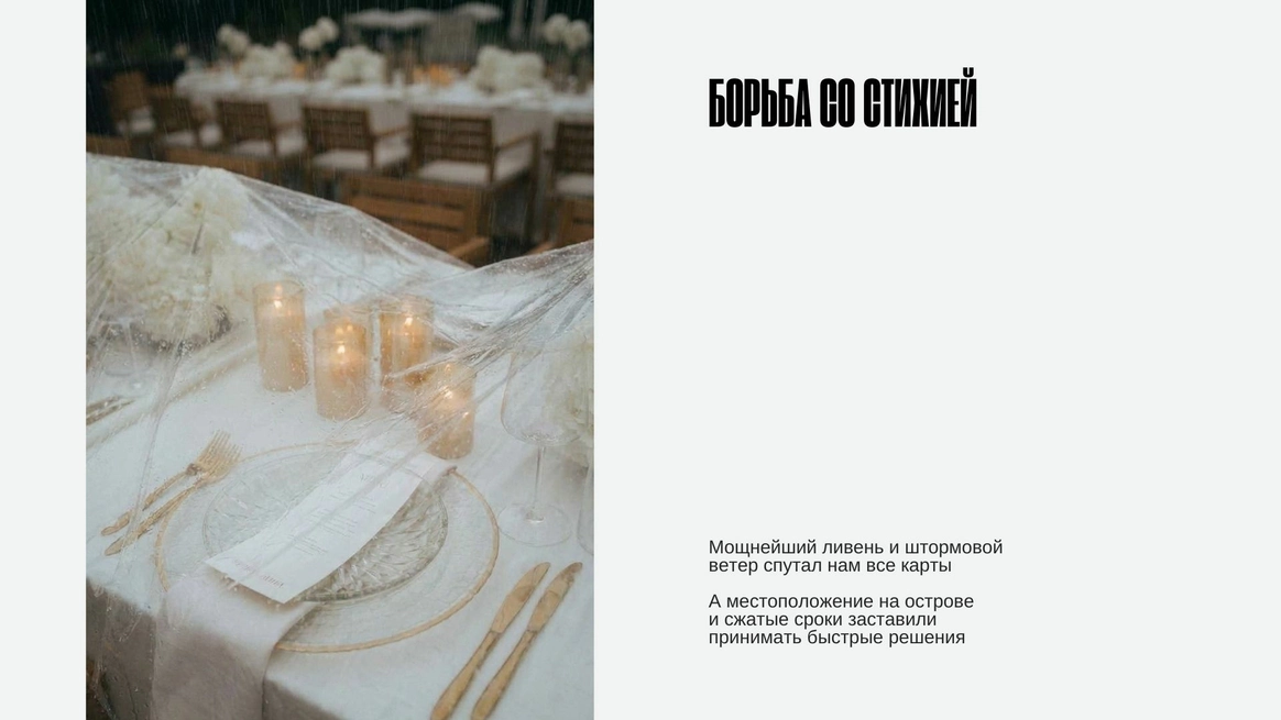 МАНИФЕСТ ТВОРЧЕСТВА И СМЕЛОСТИ МИССИЯ студии в создании идеального баланса между эстетикой и смыслом, индивидуальным подходом к каждому клиенту и ответственным выбором материалов, что в конечном итоге делает каждую свадьбу поистине уникальной. ФИЛОСОФИЯ BALANCE В нашем подходе мы придаем огромное значение смелости в выборе. Мы вдохновляем наших клиентов принимать нестандартные решения касательно тематики, цветового оформления и декоративных элементов. Свадьба — это уникальная возможность проявить свою индивидуальность, и мы поддерживаем стремление экспериментировать, чтобы каждый момент стал поистине неповторимым.