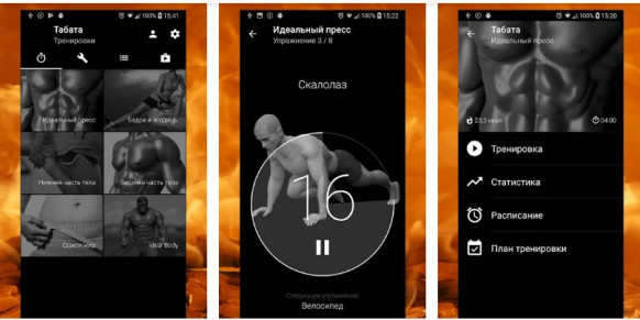 Табата — это интервальная тренировка с высокой интенсивностью. Ее основной особенностью является чрезвычайно низкая продолжительность занятия: от 4 до 15 минут. С помощью одноименного приложения для вы сможете проводить эффективные спортивные тренировки по этой системе в домашних условиях без применения спортивного оборудования.