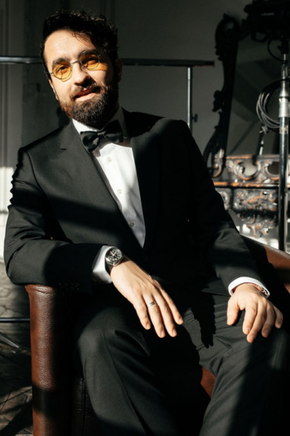 Как бы себя ни позиционировал ведущий, без этих кадров не обойтись. Пусть это будет не классический студийный портрет в черном смокинге с галстуком-бабочкой, а расслабленное, репортажное фото, сделанное в момент, когда ведущий слушает тост на банкете, но оно должно быть. И в 99% случаев именно черный костюм с белой рубашкой смотрится выигрышнее всего, так что советуем иметь на своей странице несколько фотографий в классическом и элегантном образе. Для девушек-ведущих такого универсального дресс-кода нет, но помните, что черный всегда смотрится «дорого» и стильно.