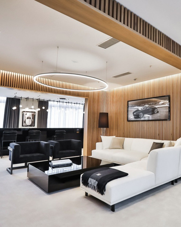 La'Pino Hall — новый многофункциональный банкетный комплекс, расположенный в элитном районе Подмосковья — деревне Лапино. Минималистичное здание дополняют современные элементы: перфорированные пластины из металла на фасаде здания, деревянный шпон в отделке стен и геометричные панорамные окна в пол. Зал площадью 815 квадратных метров позволяет устроить банкет на 500 гостей, а техническое оснащение комплекса делает возможным реализацию любой идеи.