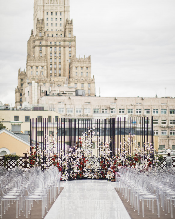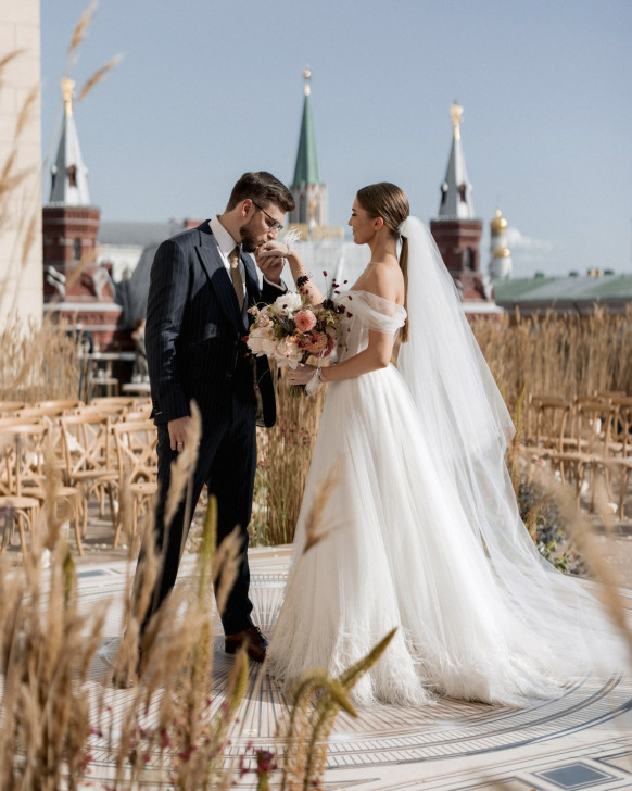 The Ritz-Carlton Moscow — один из самых популярных отелей Москвы для свадьбы. Для мероприятий здесь сразу несколько залов: «Бальный» вместимостью до 350 человек и камерный с панорамным видом на Тверскую — «Москва». В отеле есть также открытая терраса на крыше, где можно устроить церемонию. Гордость отеля — Императорский люкс. На площади в 309 квадратных метров разместились просторная гостиная с видом на Кремль и Красную площадь, тренажерный зал, кабинет, светлая ванная и спальня с дизайнерской мебелью. В отделке использованы натуральные премиальные материалы — дерево, камень и дорогие ткани.