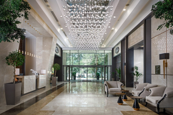 В отеле на юго-западном побережье Крыма есть все, чтобы почувствовать себя настоящим аристократом: светлые и просторные номера, ресторан с 3 залами и террасами, СПА-комплекс, бассейны, соляная пещера, белоснежный шатер для пышных торжеств, светодинамический фонтан, невероятные закаты и абсолютное умиротворение.