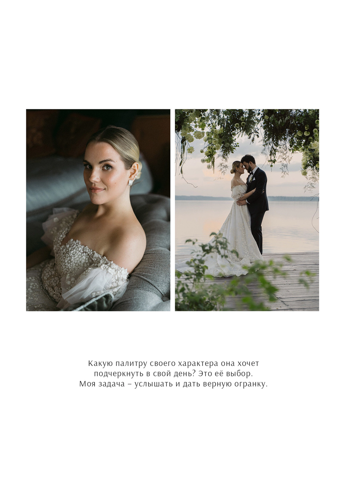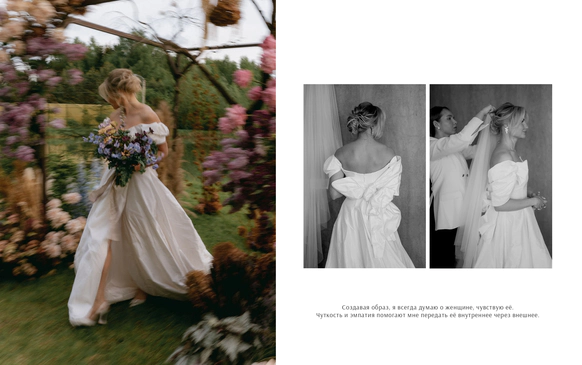 Занимаюсь проработкой свадебного стиля: собираю полную капсулу нарядов, аксессуары, обувь. Стилизую съёмки. Поэтому макияж и укладка для меня – часть единого образа. Работаю по всей России и в Европе. 2020 год – первый рабочий сезон в Москве. До этого была одним из лучших стилистов Сибири. Проекты – Танцы на ТНТ, Tatler, Spotify, обложка журнала Wedding. Моё видение отражено в портфолио в формате эстетического сторителлинга. Enjoy!