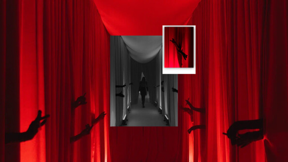 - красный коридор с руками в черных перчатках