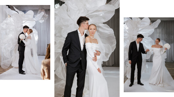 - газобетонные блоки на контрасте с легкими драпированными тканями отражали интерес невесты к разным фактурам в ее работе дизайнером интерьеров