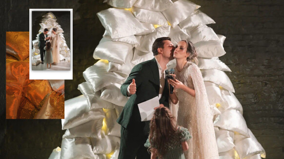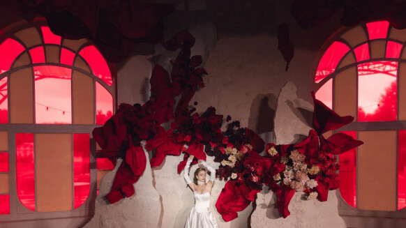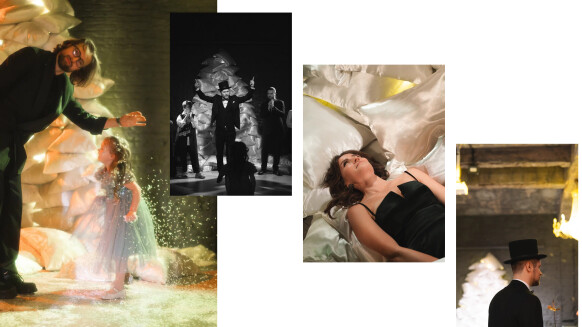 - потолок, задрапированный фатином, и дополненный парящими свечами