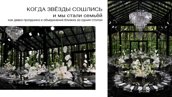 Уже на протяжении нескольких лет описание нашей студии остается неизменным: CELÁBRATION design — это лаборатория незабываемых событий, балансирующая на грани классики и современности: как природа создает уникальные условия для образования кристаллов с неповторимым внутренними миром, мы задаем атмосферу любого мероприятия, придавая ему неповторимый облик, наполненный эмоциями и историей наших клиентов Эмпатия, искренность и ответственность — основные принципы, на которых построена наша работа, в визуале мы стремимся к созданию чистой базы, на которой можно выстраивать основные акценты, будь то цвет или необычные детали Активно продвигаем креативные рассадки, хоть и принимают их пока со скрипом С уважением, Надя — идейный вдохновитель CELÁBRATION design