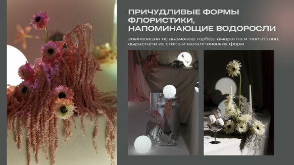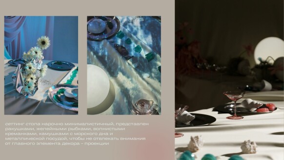 Флористика причудливых форм - напоминание о морской флоре, а сет дизайн - минималистичный, оставляющий главным действующим акцентом - проекцию