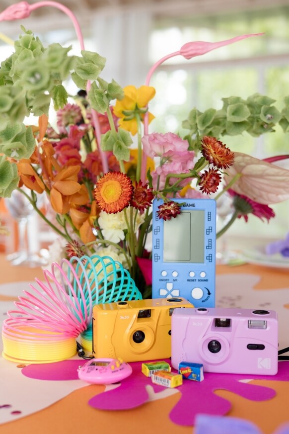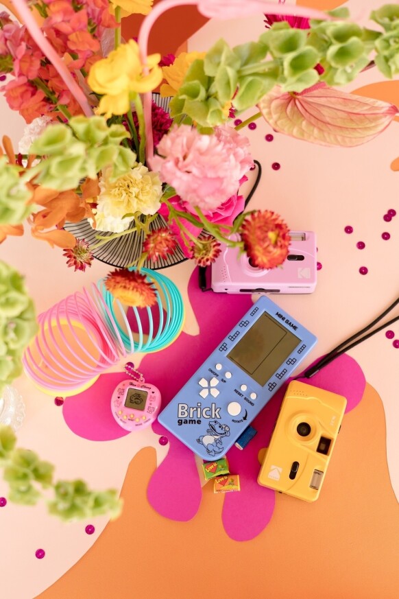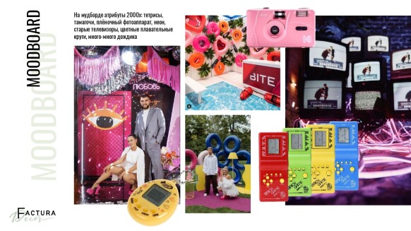 Мы включили лучшие хиты 2000-х, вдохновились стилем того времени и создали пространство, где каждый гость мог вернуться в юность. Тамагочи, тетрисы, пружинки-радуги, бумажные кляксы — каждая деталь напоминала о той эпохе.