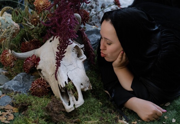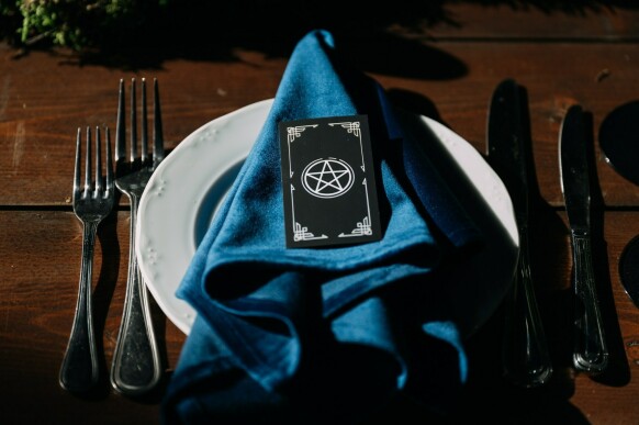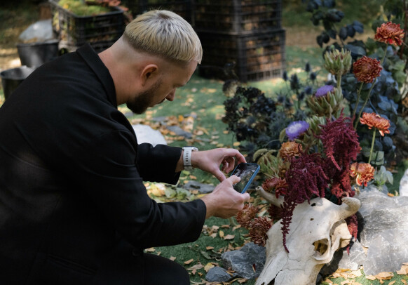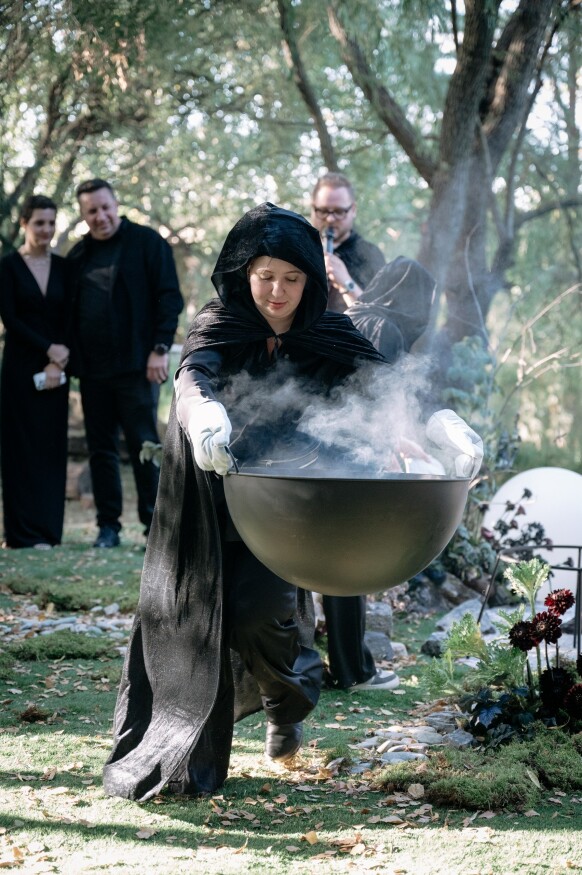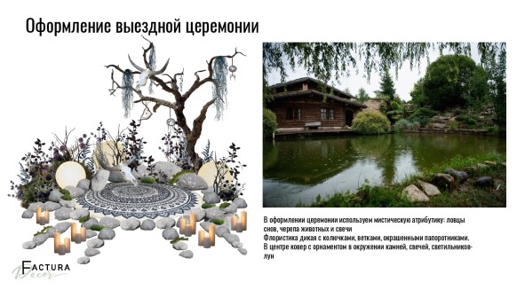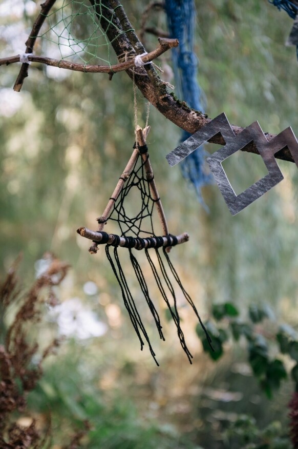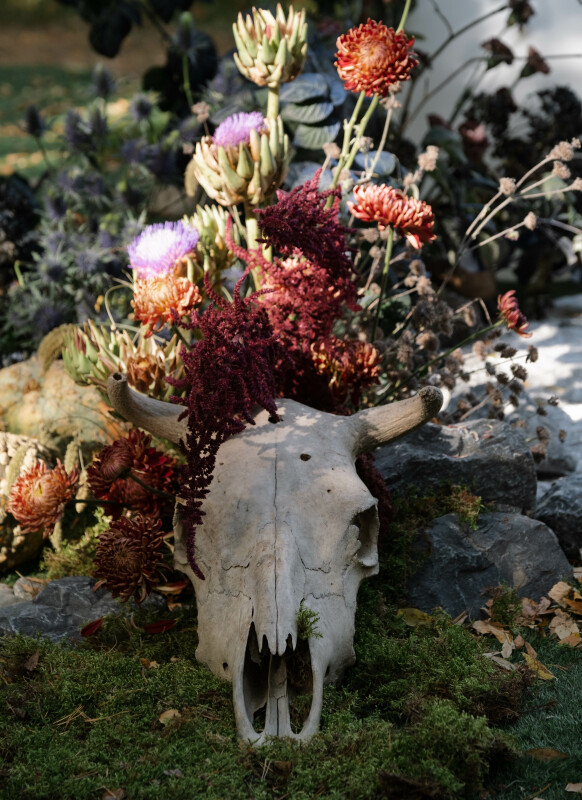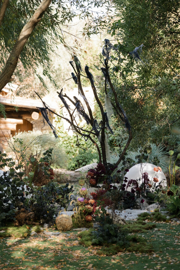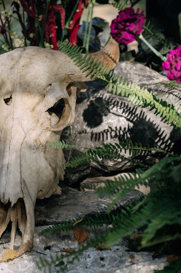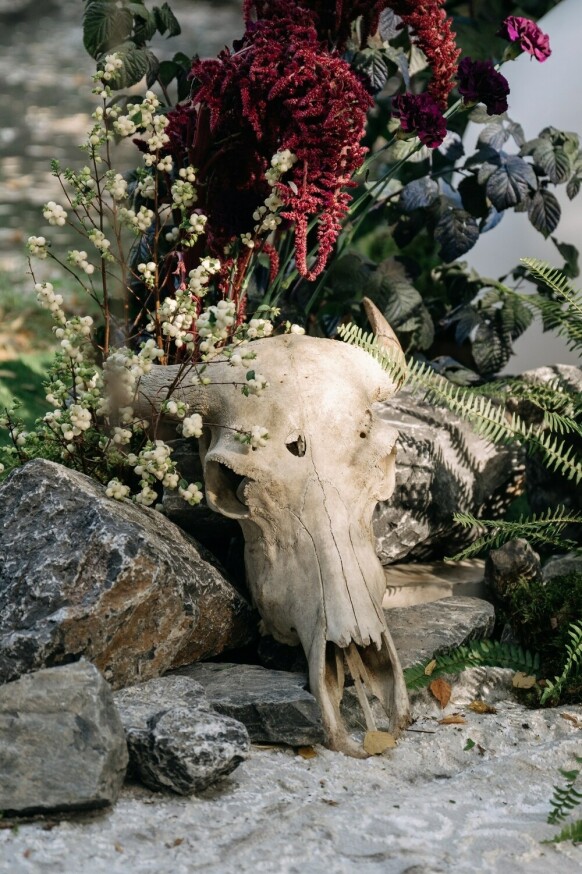 А детали? Черепа диких животных, карты Таро, мох и камни, изогнутые свечи на «курьих ножках», ловцы снов с рунами... Всё это создавало мистическую, почти потустороннюю атмосферу, но без лишнего пафоса — только стиль, загадка и продуманные символы.