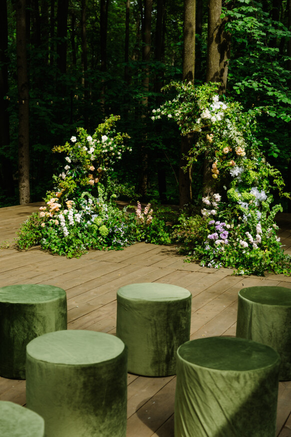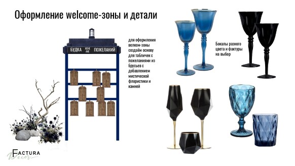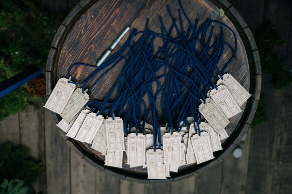 Этот проект стал настоящим квестом, где каждое украшение — это зашифрованное послание. Телефонная будка ТАРДИС, Дары Смерти, котёл для сжигания букета, табличка Welcome из «Твин Пикс». Каждый элемент – как портал в любимую вселенную молодожёнов.