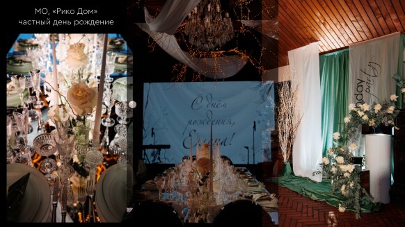 Цветы и декор Натальи Бронниковой — декораторы из Москвы, заняли третье место в премии TOP100AWARDS’21. Студия создает элегантное оформление с тщательно проработанными деталями. Флористика, дополнение и трасформация интерьера помещения — базовые принципы работы над любым проектом.