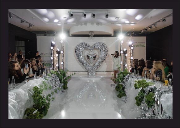 Мероприятие началось. Под блестящей упаковкой скрывался арт-объект в форме сердца.