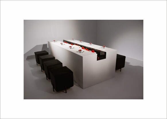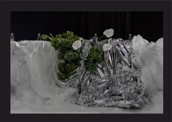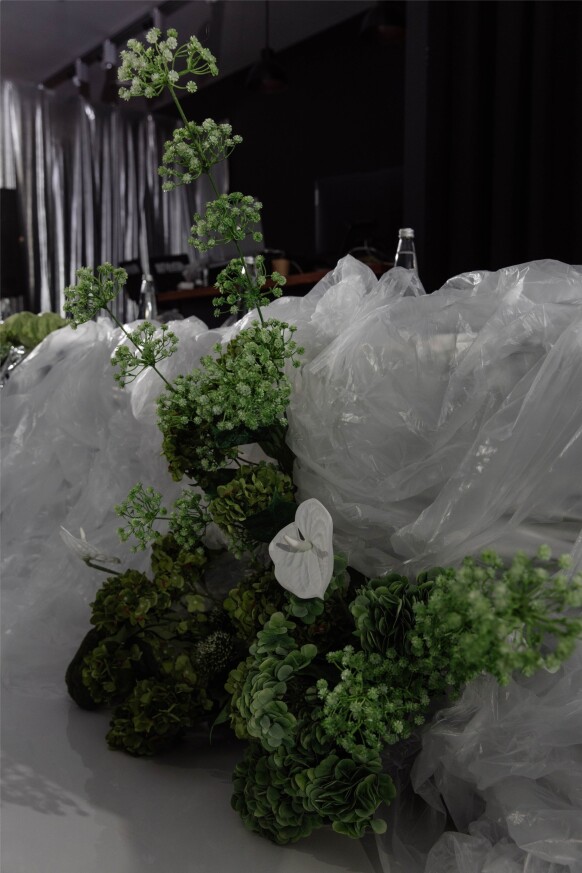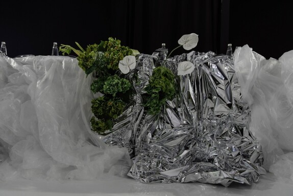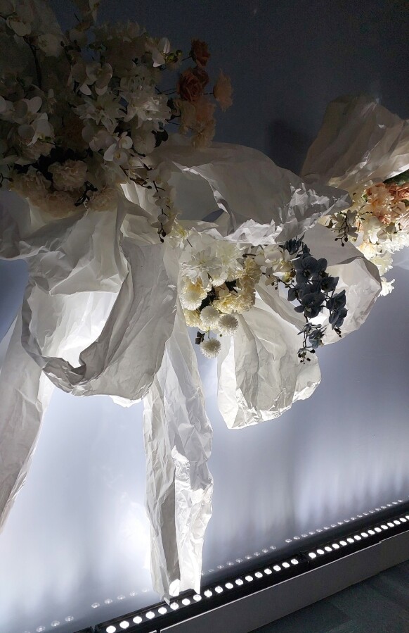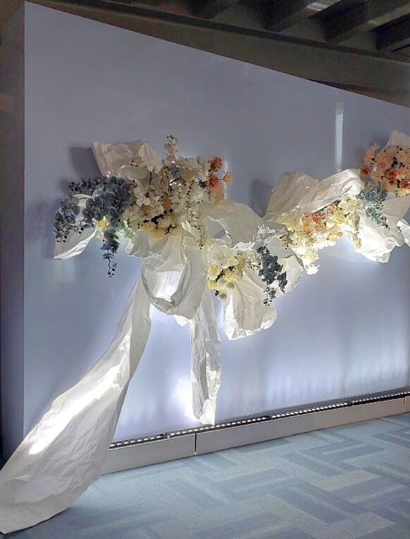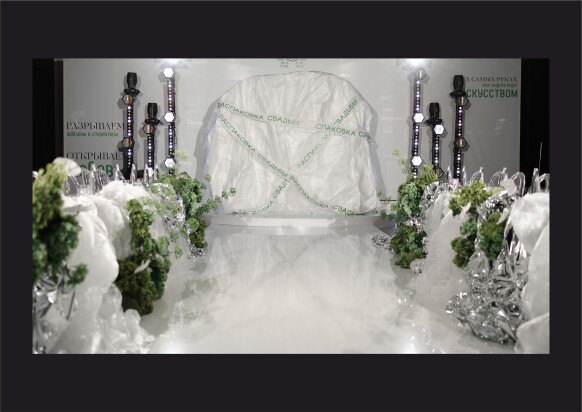 Гости буквально проходили через блестящую упаковку и попадали в зал, где их ждал некий объект, упакованный как подарок.