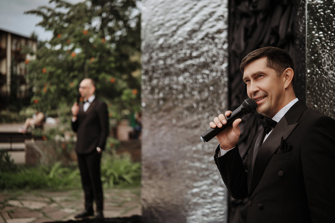 Кирилл — мозг гуманитария заключенного в тело инженера. Обладатель 1 Кю по каратэ, поэтому все знают, что у Кирилла высокий Ай Кю. Стрессоустойчив в любой ситуации, за плечами 11 лет работы в школе. P.S. Однажды спас свадьбу, благодаря умению играть на гитаре! Сергей — говорит, что полутатарин, но никак не проверить. Ради игры в КВН поступил в институт, в молодости читал рэп, а позже честно отсидел 2 срока депутатом городского совета. 80 лет жизненного опыта на двоих и умение находить общий язык с кем угодно — залог идеальной атмосферы на Вашем ивент-событии!