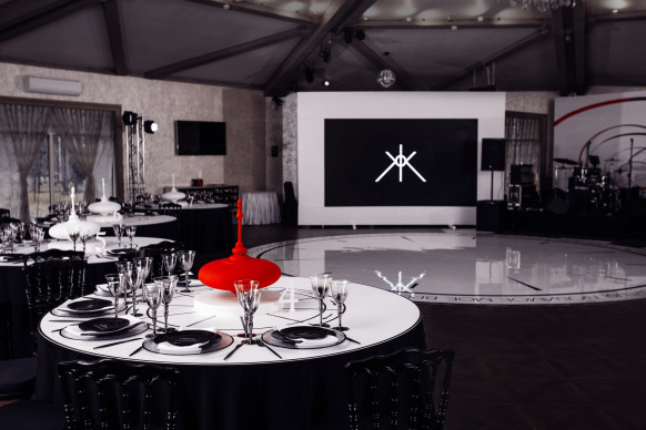 В сердце основного зала разместилась банкетная зона, а также фотозона.