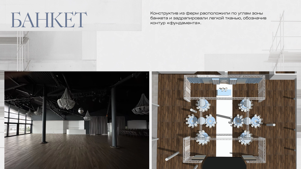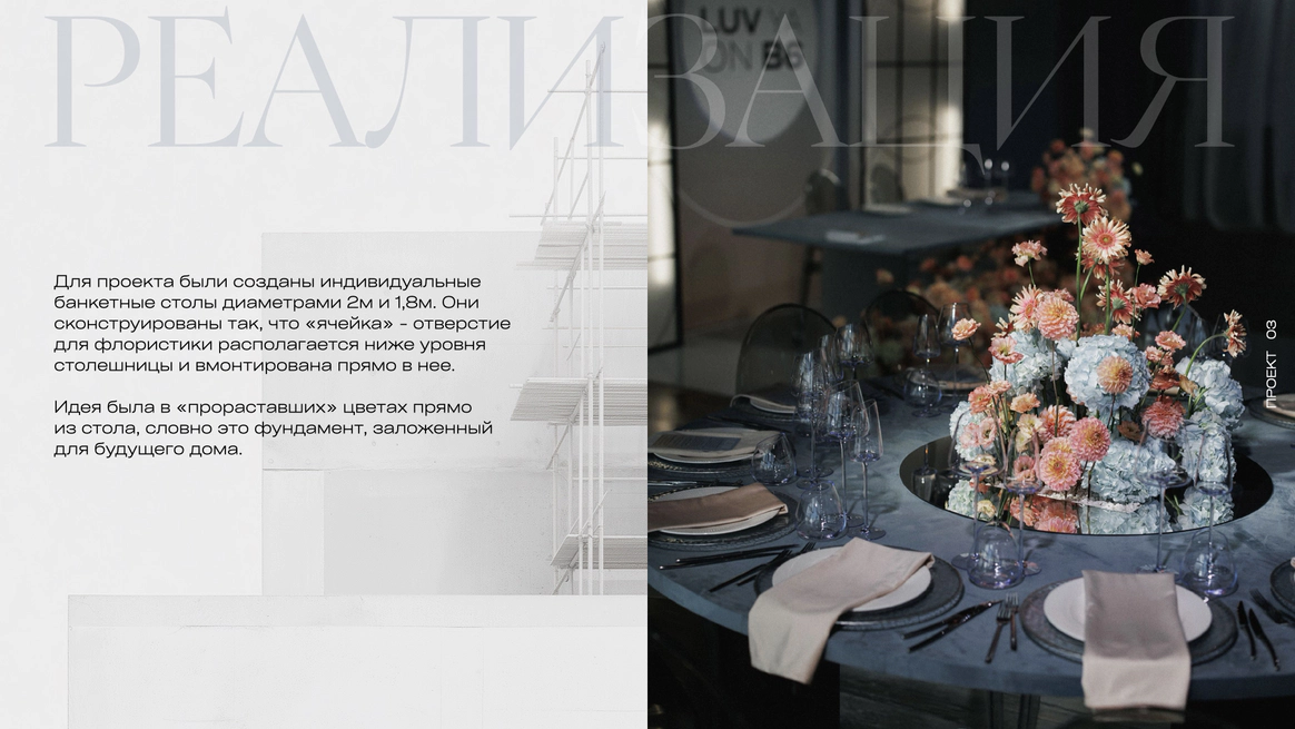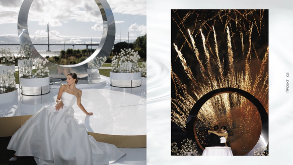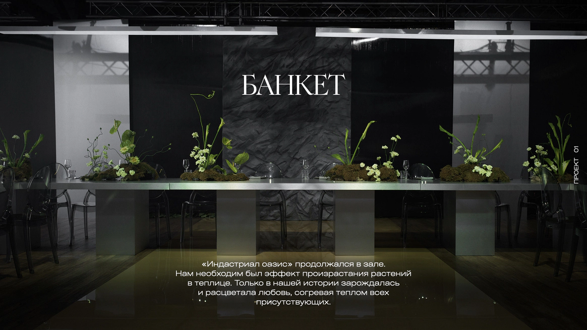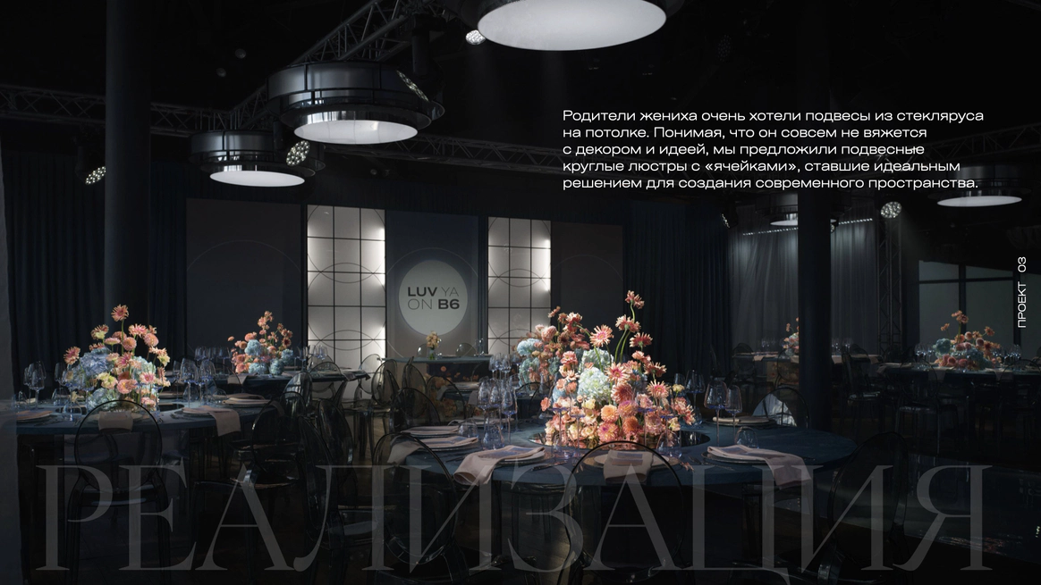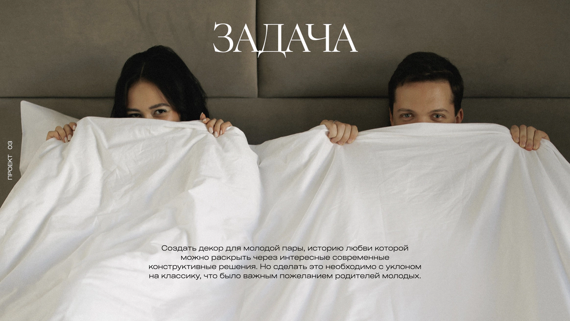 Перед нами стояла задача создать декор для молодой пары, историю любви которой можно раскрыть через интересные современные конструктивные решения. Но сделать это необходимо с уклоном на классику, что было важным пожеланием родителей ребят.