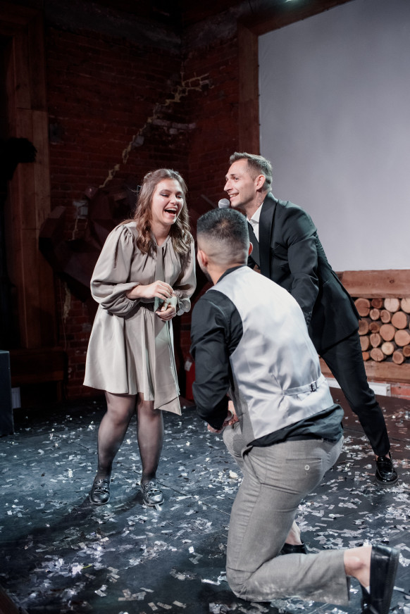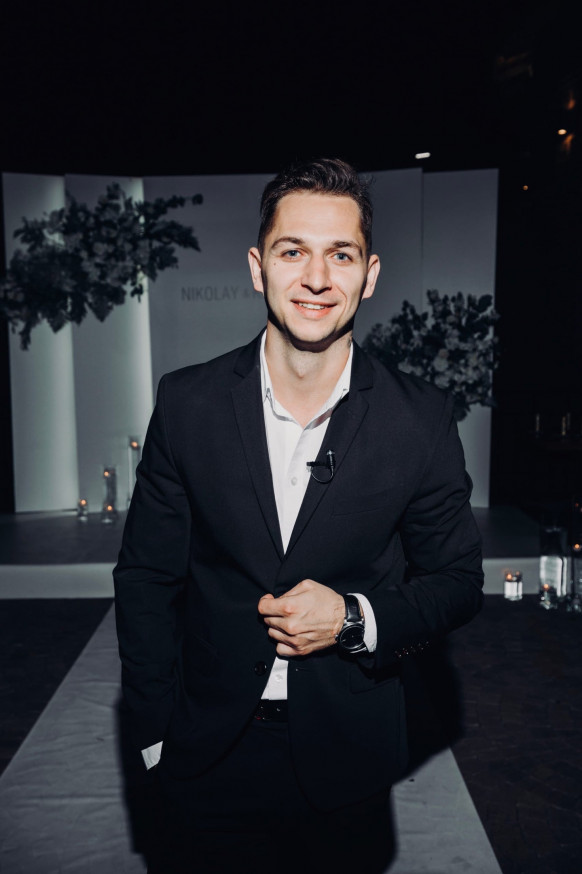 Стал свадебным ведущим в 13 лет, мгновенно получив всеобщее признание от родственников. Вопреки моим ожиданиям, впечатлить удалось не только маму. Прекрасно нахожу общий язык с семидесятилетней бабушкой и тринадцатилетним фанатом Моргенштерна. Мой голос завирусился в TikTok и набрал 5 миллионов просмотров, хотя я в нем даже не зарегистрирован. Пытаюсь определиться с датой собственной свадьбы в плотном рабочем графике. Веду эфиры на радио. Уверен: быть ведущим это призвание, стиль жизни и, отчасти, смысл жизни.