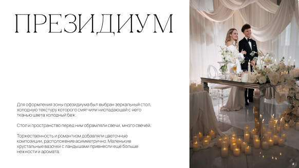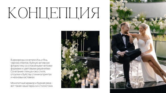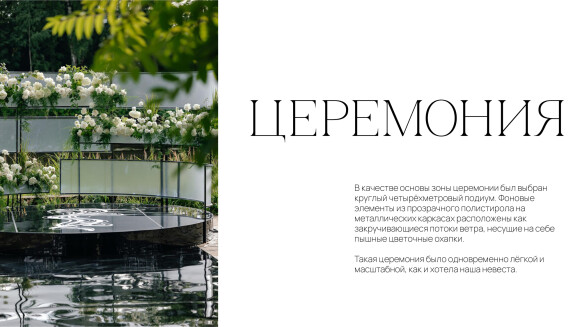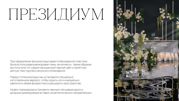 Всем доброго дня! Позвольте представиться Вам, Яна, руководитель студии Florapolitika. Я не гонюсь за минутными трендами, помня о том, что мода приходит и уходит, а стиль остаётся навсегда! Пожалуй это основной девиз мой и моих проектов. Я им моя команда всегда стараемся слышать клиента, поскольку это их свадьба, работаем мы прежде всего дня клиента, а уже потом на трендовое портфолио. Политика стиля, лаконичность форм, стильные элегантные оформления, счастливые клиенты - это всё мы ! Ещё один наш девиз: ВОЗМОЖНО ВСЁ - СРОЧНЫЕ ПРОЕКТЫ! Подготовка масштабного оформления менее чем за сутки не пугает, а напротив, держит в тонусе, расширяет границы возможного, стирает рамки.