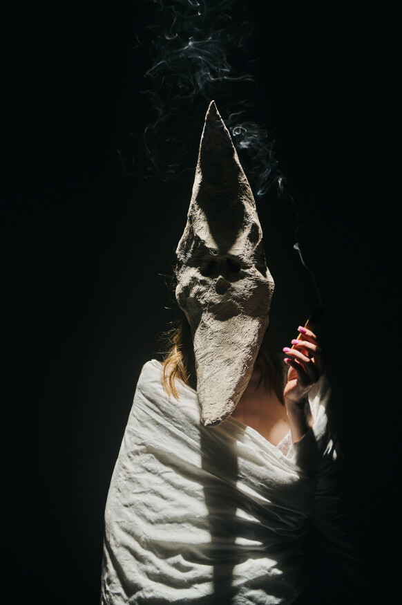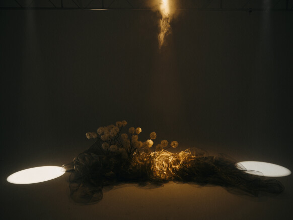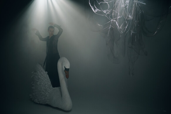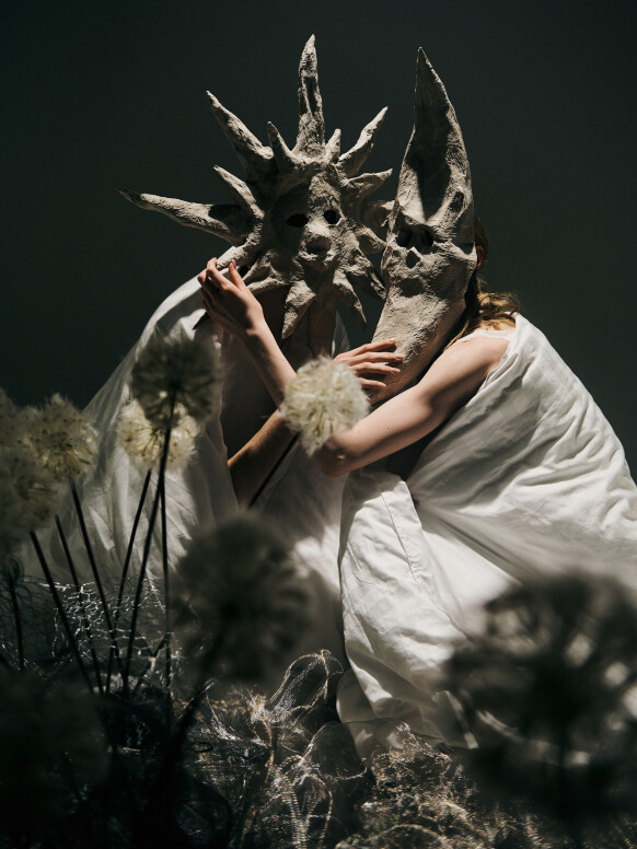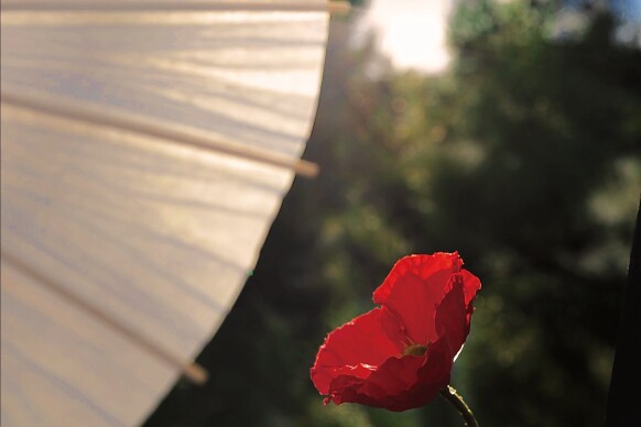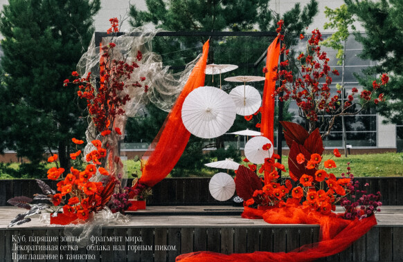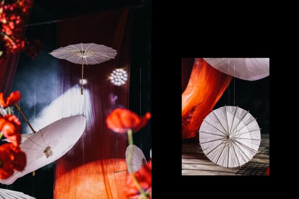 Режиссерский прием – исследование вечного поиска любви через призму сказки. Следуя «красной нити», герой традиционно оказывается плененным чужой культурой, преломляющей его сознание. Куб декораций был разделен красной полосой: маковое поле против мистических зонтов возлюбленной и ветра перемен. Нарратив вне времени.