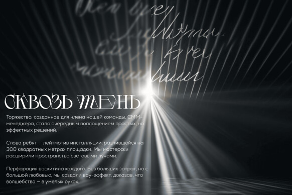 Концепция декора - свет, высекающий стихи на гранях архитектуры пространства.