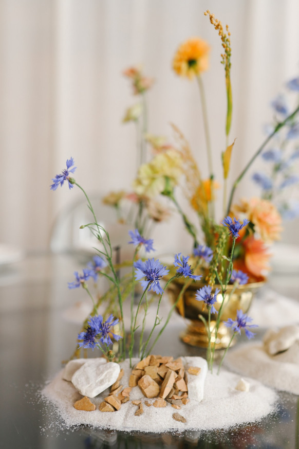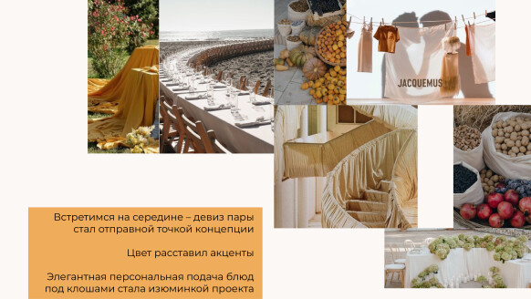 Задачи: отразить в декоре фразу "встретимся на середине", которая была очень важна для пары, т.к. все проблемы можно решить, если идти навстречу друг другу, использовать только один цветок во флорсоставе, эксперимент с фудстайлингом