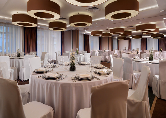 Всего 2 часа от Москвы, и вы окажетесь в Калуге, прекрасном русском городе с многовековой историей и богатой культурой. Оригинальное здание отеля Four Points by Sheraton Kaluga, насчитывающее 174 номера различных категорий, расположено в самом центре города, в шаговой доступности от всех главных достопримечательностей и красивых локаций для фотосъемки. В дизайне здания отеля и элементах декора архитекторы постарались воссоздать столь близкую для Калуги космическую тематику. В Four Points by Sheraton Kaluga вас встретит профессиональная команда, которая поможет организовать любое мероприятие на высшем уровне. Все сотрудники придерживаются высоких стандартов обслуживания компании Marriott International, частью которой является отель. Его локации давно стали излюбленным местом проведения многих значимых мероприятий и торжеств калужан и гостей города. Светлый банкетный зал с открытой террасой, ресторан с купольной крышей или современный бар с дизайнерскими интерьерами для камерных торжеств – вы обязательно найдете идеальное место для события любого формата. Стильные интерьеры номеров отеля с видом на город станут прекрасным дополнением праздника. Здесь вы можете отдохнуть перед столь важным мероприятием, организовать фотосъемку утра жениха и невесты, будучи уверенными, что ваши фотографии будут невероятно красивыми и атмосферными. Отдохнуть после мероприятия вы сможете в уютном Agua Spa, где у вас будет возможность воспользоваться услугами массажиста, косметолога или просто поплавать в бассейне или расслабиться в хамаме, сауне и джакузи. Особый шарм отелю Four Points by Sheraton Kaluga добавляет его знаменитая люстра, сфотографироваться с которой приезжают люди из разных уголков России. И это неудивительно, ведь уникальный арт-объект занимает 5 этажей и весит, несмотря на внешнюю легкость, целых 500 килограмм!