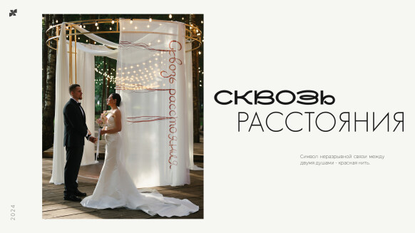 Алину и Никиту судьба сталкивала не раз, но только оказавшись на расстоянии друг от друга, они поняли, что такое настоящая любовь. Поэтому название концепции звучит так: "Сквозь расстояния", а главной темой стала красная нить, которая привела их друг к другу.