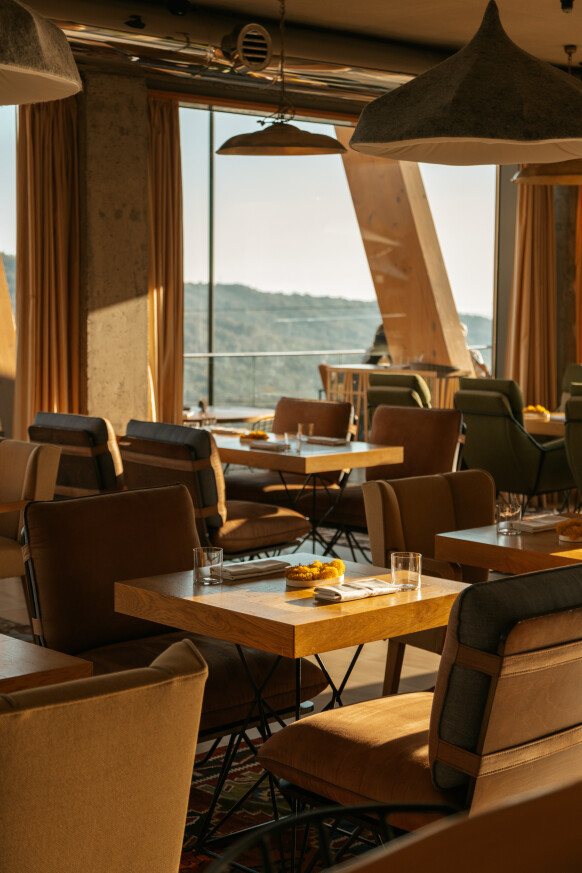 Панорамный ресторан Кáури расположен в Сочинском национальном парке среди живописной горной природы на территории «Скайпарк Сочи». Он словно парит над рекой Мзымта, а с него открываются виды на колхидский лес, Корабельные скалы и Чёрное море. Это идеальное место для проведения незабываемого праздника в компании любимых людей или коллег по бизнесу. В ресторане ежегодно проходит сотни различных мероприятий: от корпоративных тимбилдингов до частных свадебных церемоний. Команда агентства skypark!event обладает большим опытом в организации и проведении любых мероприятий, поэтому здесь вы сможете осуществить свою мечту и провести незабываемый день в уникальном месте. Выездная регистрация в Амфитеатре с видом на Скайбридж и горы – одна из главных фишек ресторана Кáури. В день свадьбы молодожёны смогут получить незабываемые эмоции от уникальных высотных аттракционов: полёт предоставляется в качестве свадебного подарка. Два уровня ресторана Кáури позволяют проводить как банкетные, так и фуршетные меню. В банкетной рассадке ресторан вмещает около 200 гостей. В тёплые месяцы открывается терраса на 50 посадочных мест. Ресторан Кáури — это атмосферное место, где сочетаются трудолюбие, опыт, стремление к новым историям и забота о своём госте. Выбирая это место для события, вы можете быть уверены в том, что оно пройдет на высоте, как в прямом, так и в переносном смысле. «Мы постоянно открыты новому и не останавливаемся на достигнутом, поэтому Кáури — исследователь и экспериментатор, сочетающий в себе две концепции — fast casual и fine dining».