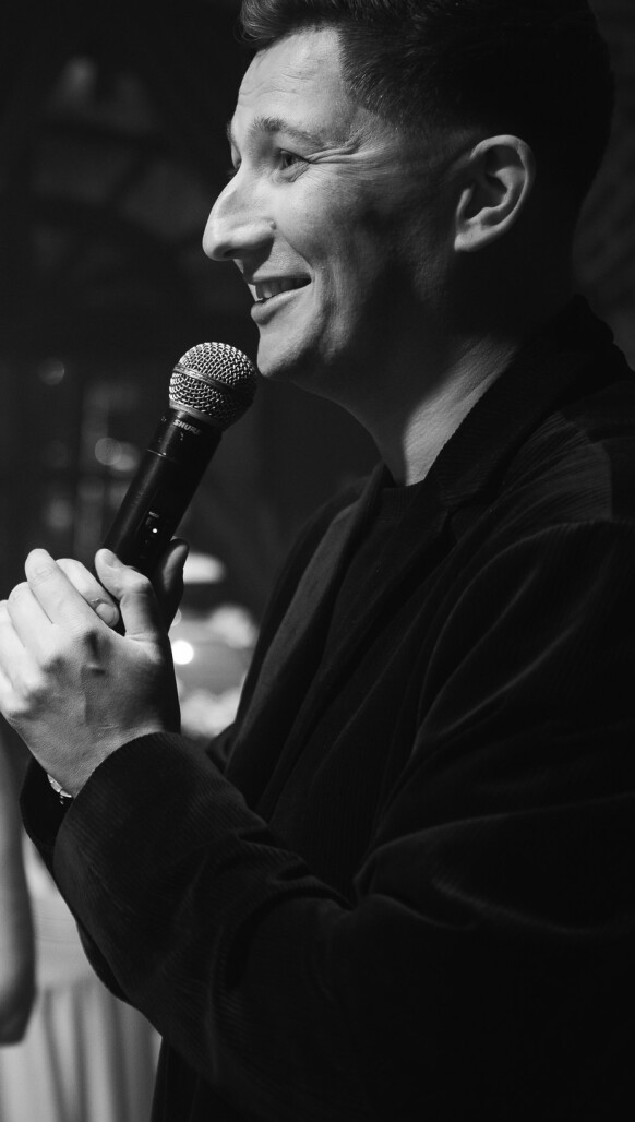 Понятная классика в мире авангарда и оверсайзов. Гедонист. Эстет. Эноман. Классный ведущий. Счастливый миллениал. Рост 194, вес 85 и бесконечно широкая душа. Сомелье (диплом WineState) Авторские винные программы. Играю на ударных. Овен, если это важно. В детстве приходилось часто писать свои ФИО дольше чем все, поэтому у меня красивый почерк. Женат. Влюблен (это одна и та же женщина, если вы заволновались). 2 ребенка, 2 подбородка, поэтому 3го пока не планируем. Легкость. Улыбка. Брюки