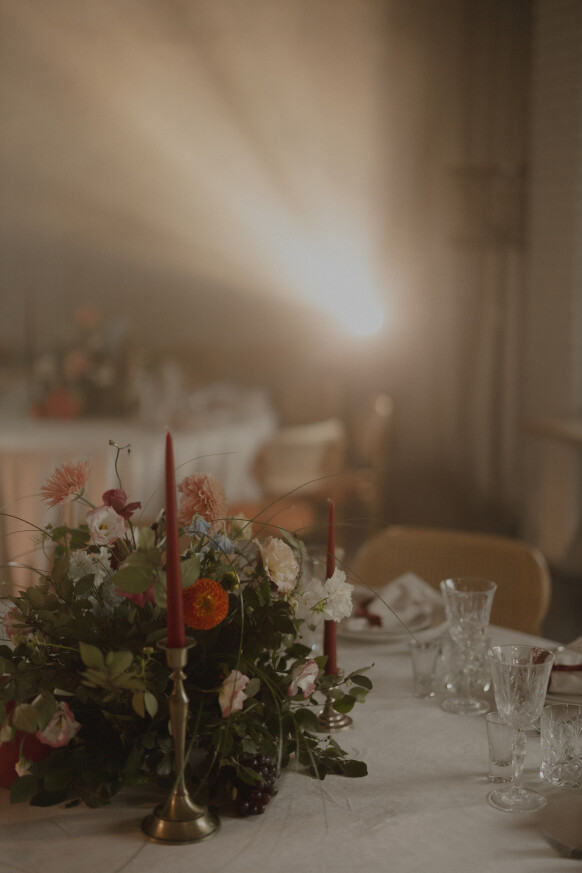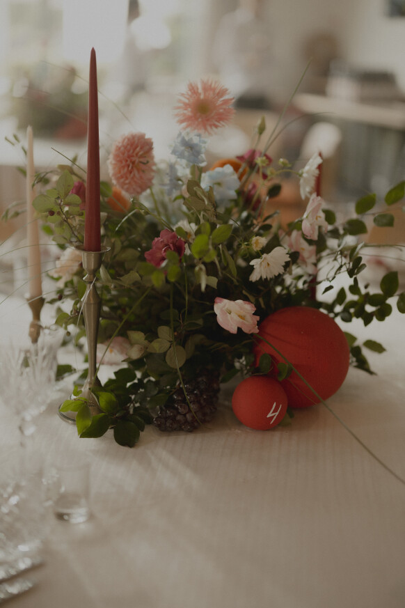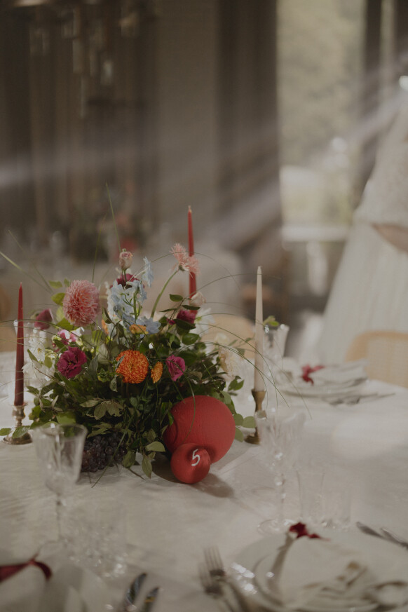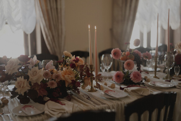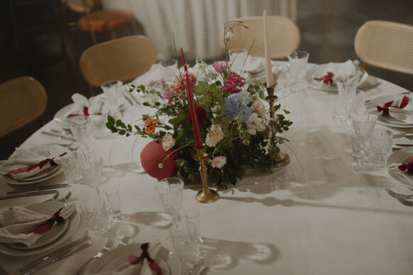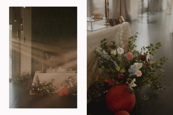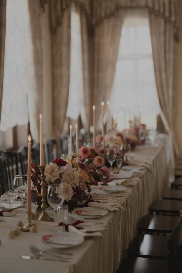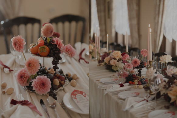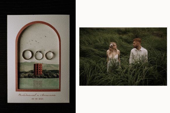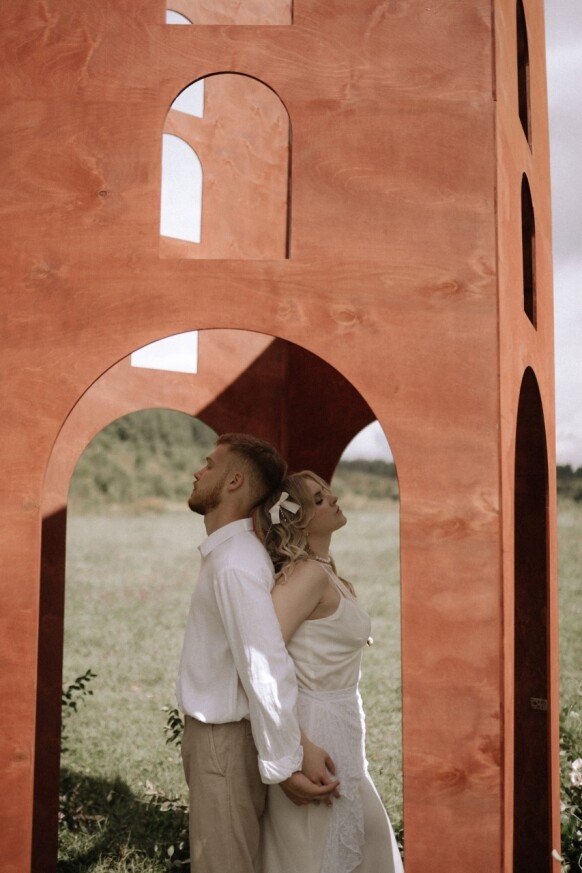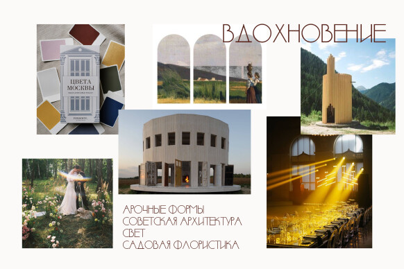 Отправной точкой в разработке проекта стали любимые оттенки акриловых красок невесты «Цвета Москвы». А также вдохновение советскими архитекторами, которые занимались бумажной архитектурой. Кстати, это направление зародилось именно в Росси, поэтому в декоре есть отголоски стиля а-ля рус.