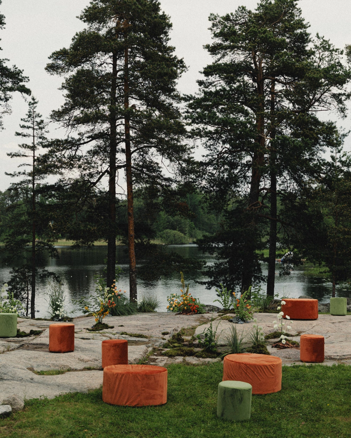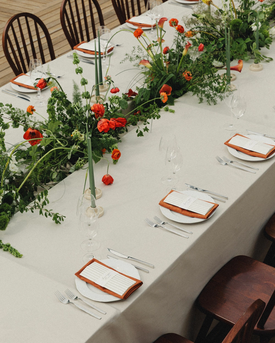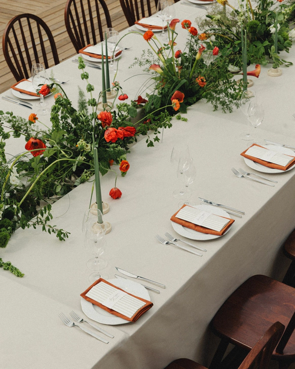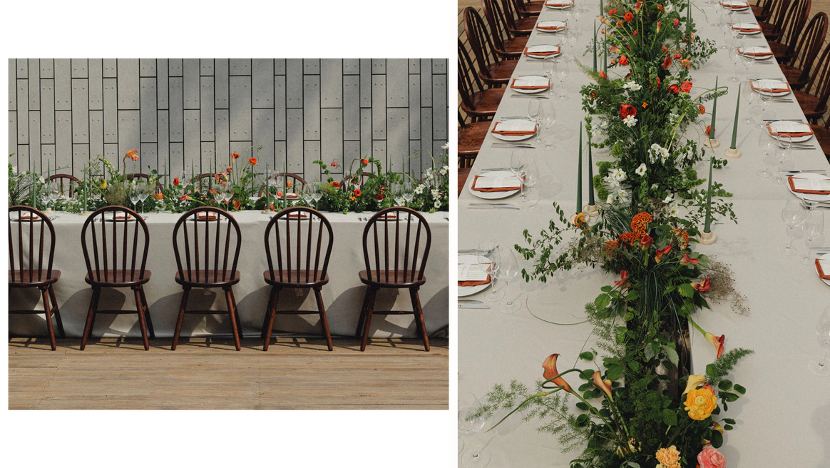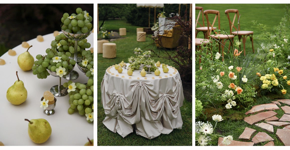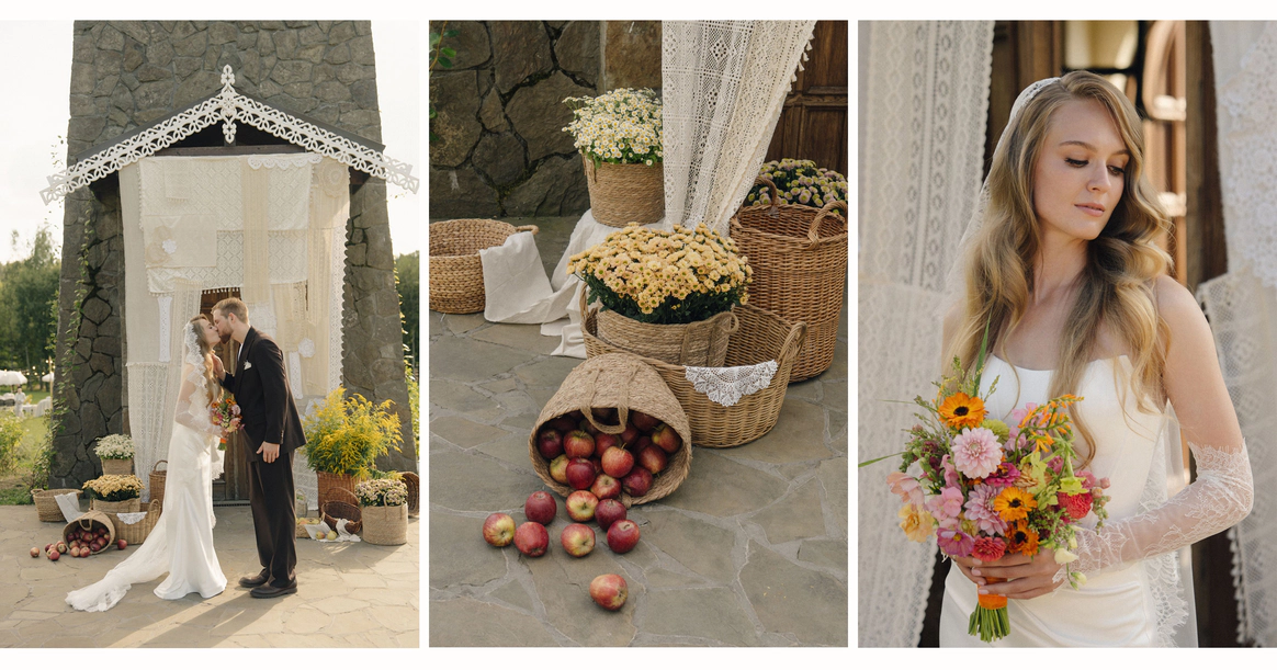 Как итог - выбор строгой геометрии на церемонии и более плавные, мягкие линии в оформлении ужина.
