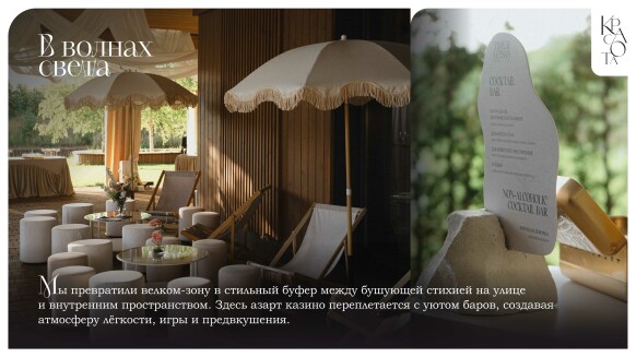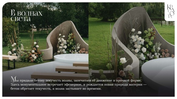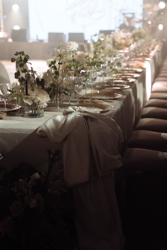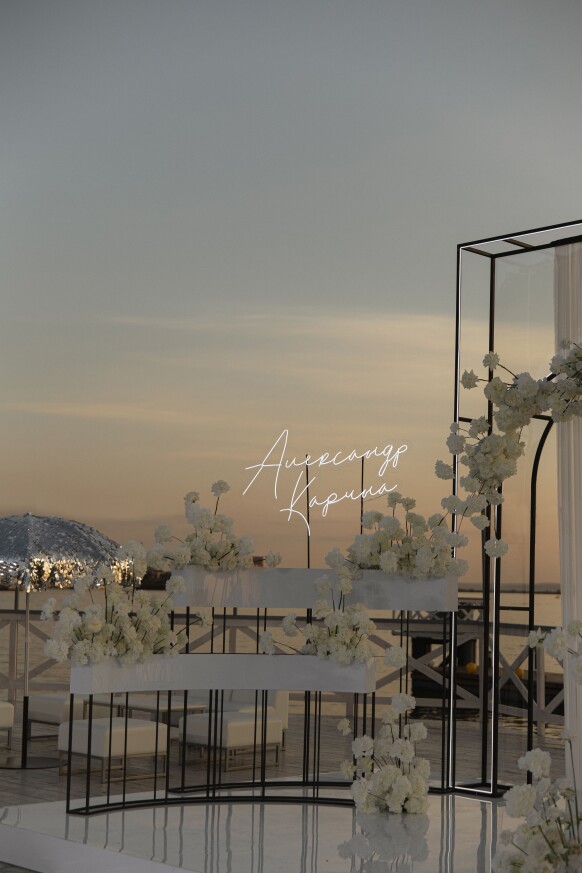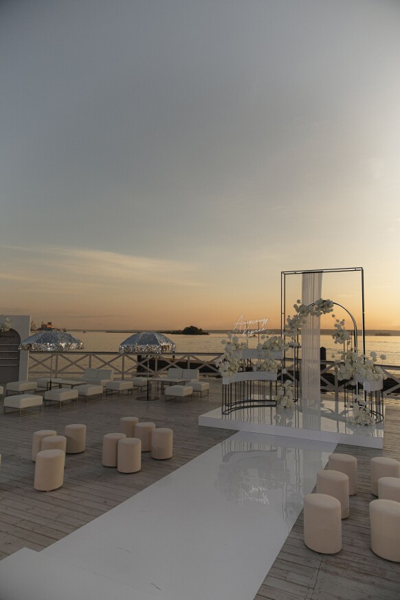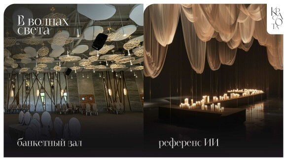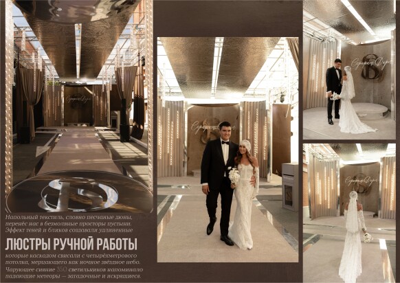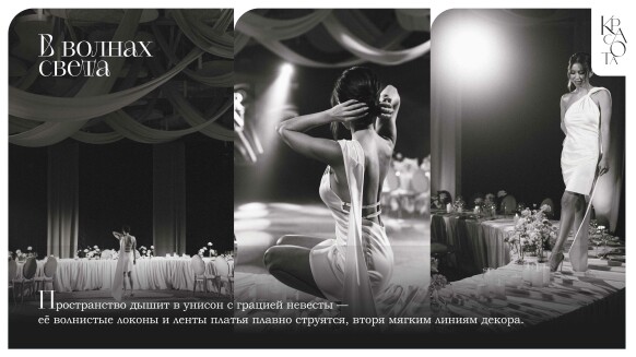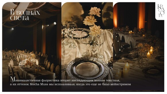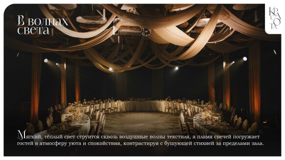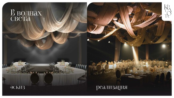 За годы работы наша команда жаждет смелых экспериментов в декоре и давно к ним готова. Но татарская публика остаётся верной традициям, предпочитая сдержанную элегантность. Поэтому даже рассадка гостей за столом в форме волны воспринимается рискованным, почти дерзким решением.