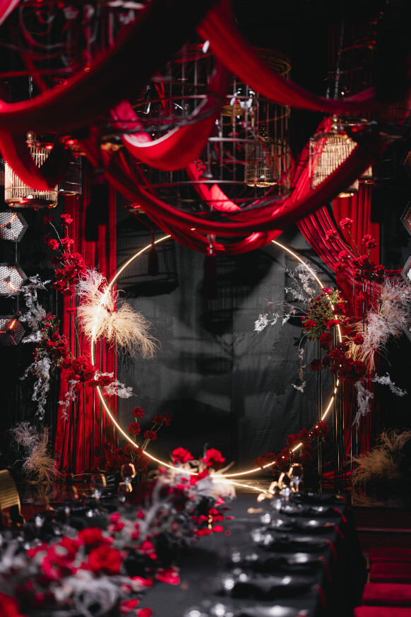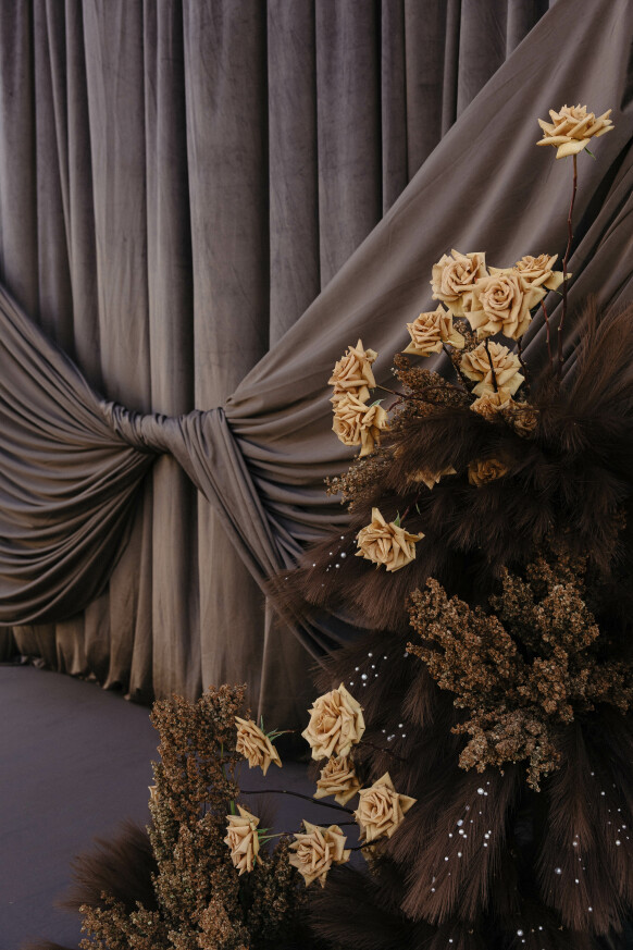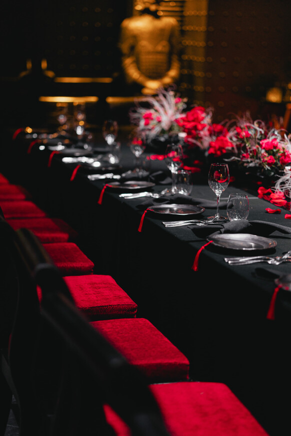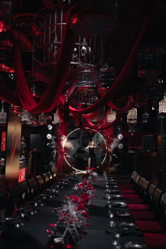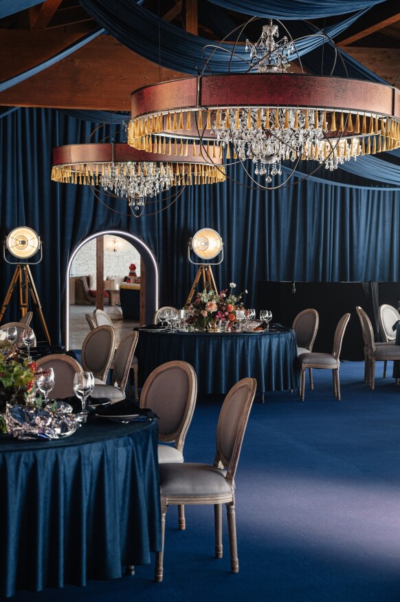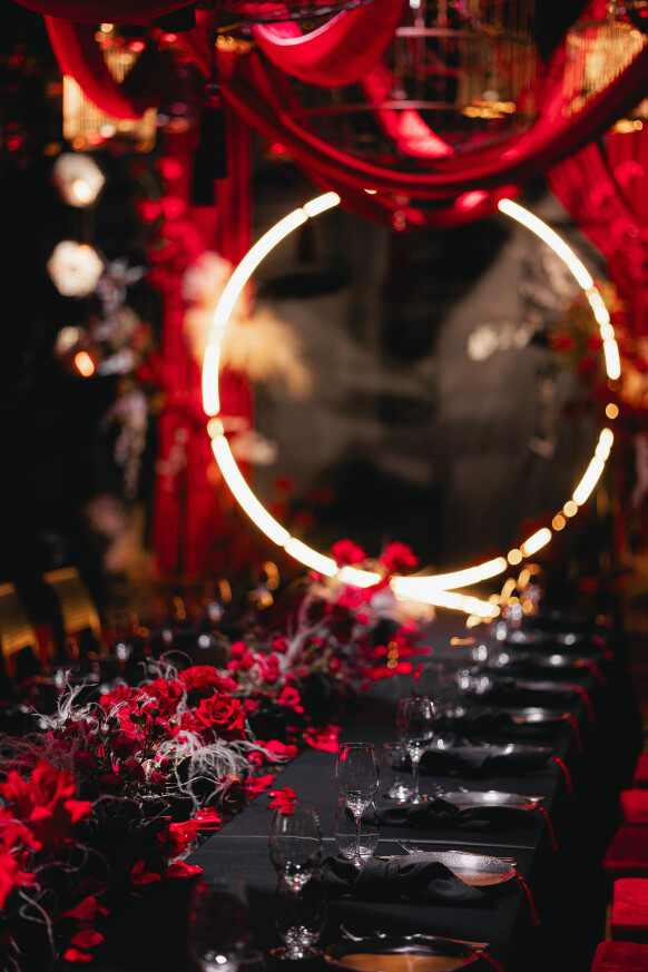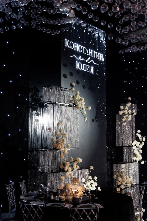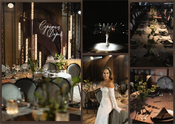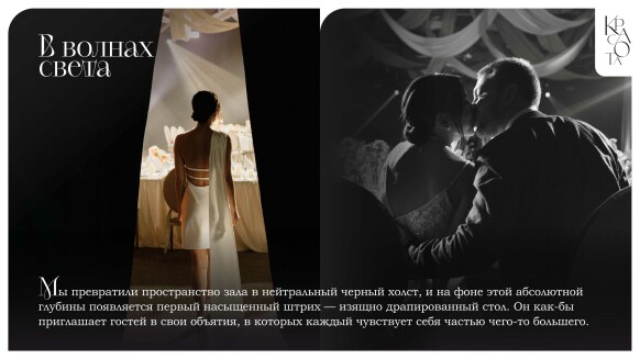 Ресторан «Дикий» — одна из самых популярных свадебных площадок Казани, но в этот раз гости его не узнали. Мы воплотили давнюю мечту, превратив зал в чёрный кабинет — пространство глубины, контраста и утончённой драматургии.