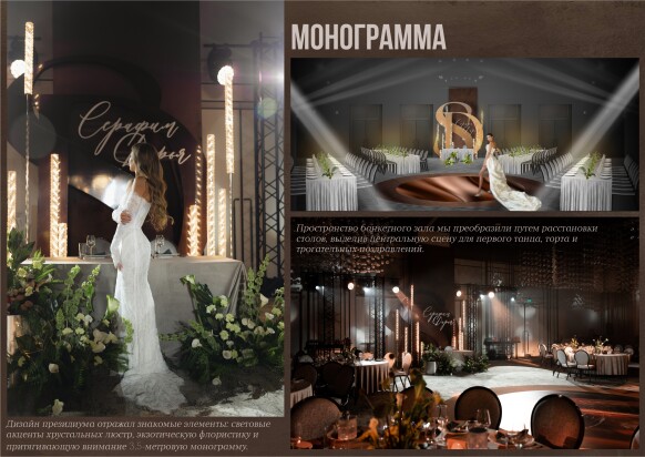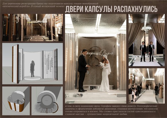 Этот проект — смелый синтез спорта, мира фантастического кино и эстетики. Вдохновленные страстью жениха к хоккею, фильму «Звёздные войны» и спортивным духом семьи, мы создали пространство, где энергия игры, элегантность переплелись с футуризмом. Каждая деталь декора отражает их стремление к победам, к новым вершинам — в спорте, в жизни, в любви.
