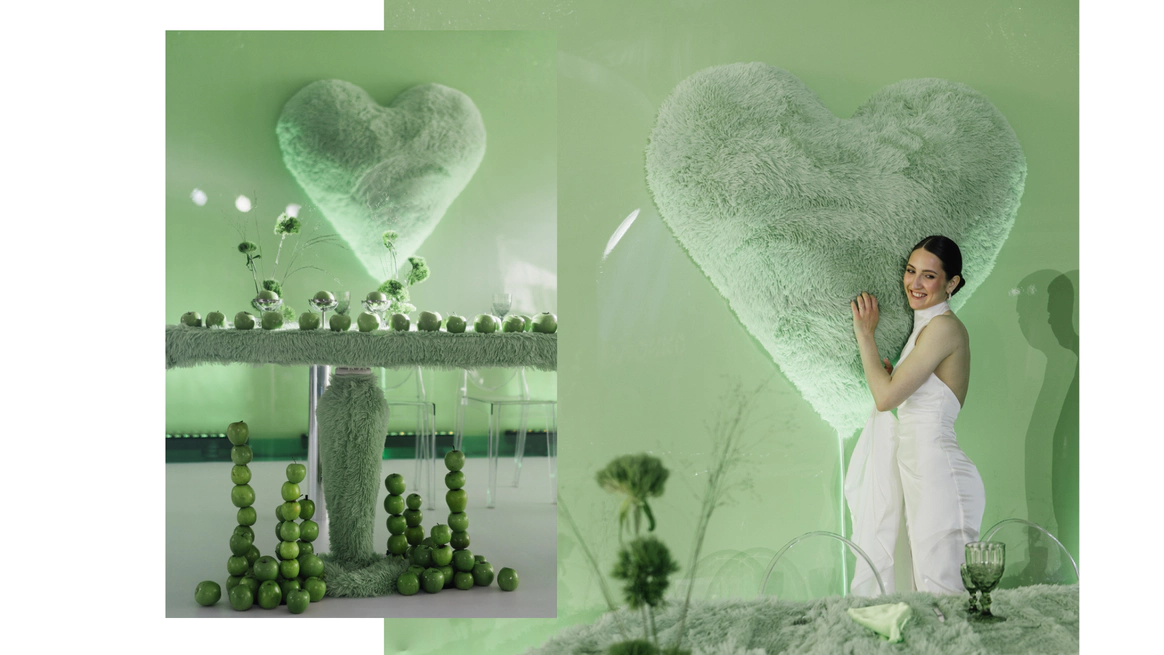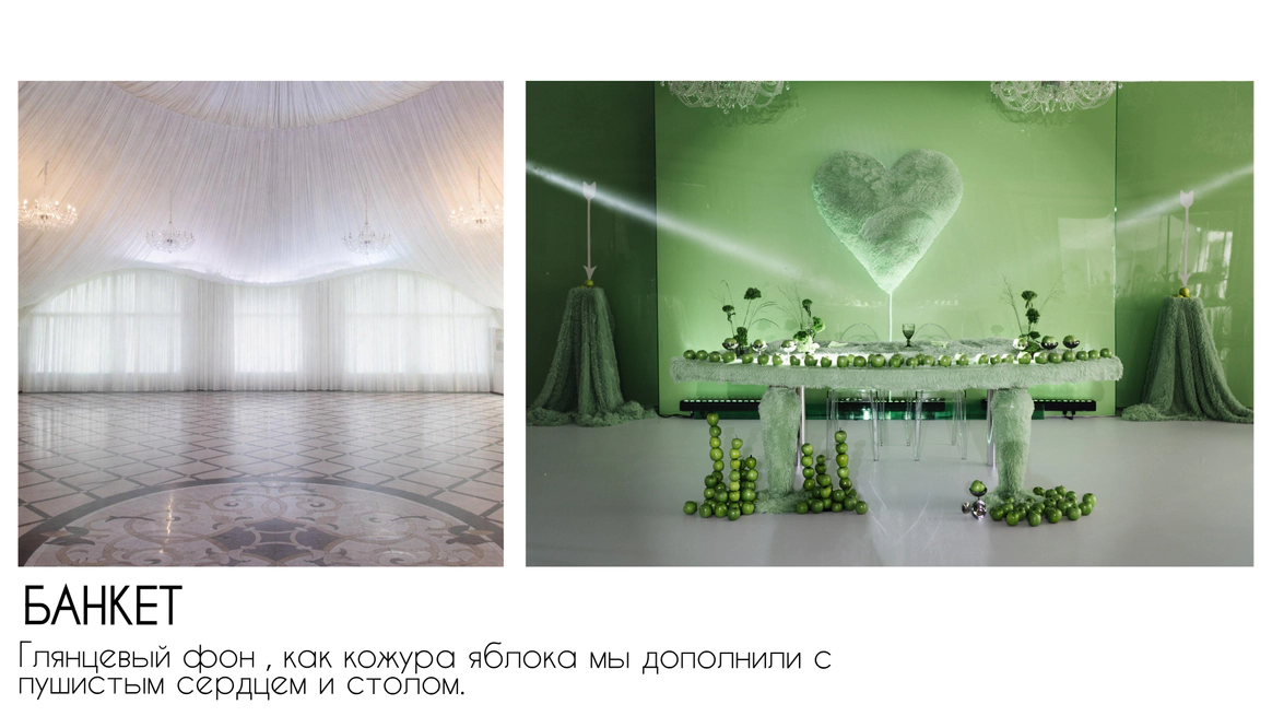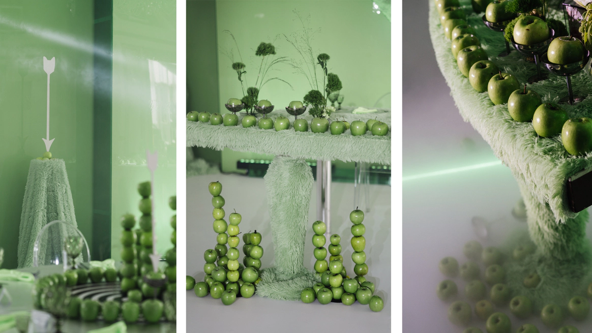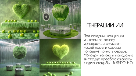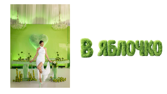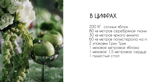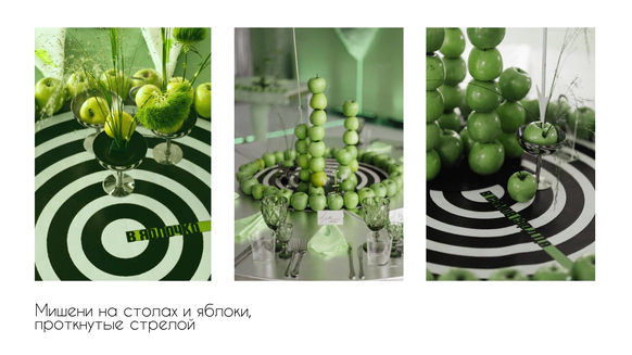 Поэтому за основу мы взяли яблоко, зеленый и металлический цвета.