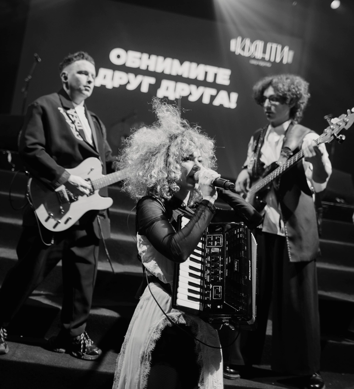 Музыкальная группировка, маскирующаяся под кавер-бэнд. Шоу-группа «Кьянти» - НЕ ПРО ВИНО, а ПРО НАСТРОЕНИЕ. Про то самое «ещё одну!», про мурашки не от холода, про момент, когда незнакомые люди поют в один голос, про ощущение, что вечер вышел из-под контроля, но в надежных руках. Представьте, что оказались в центре яркого, эмоционального квартирника, где есть только ВЫ и МЫ, разделяют нас лишь музыкальные инструменты, которые, возможно, окажутся в ваших руках. ЧТО ПРОИСХОДИТ С ГОСТЯМИ? 1. Сначала наблюдают. 2. Потом кивают в ритм. 3. Потом снимают пиджаки. 4. Потом забывают, кто из них директор. *и ДА, мы вызываем зависимость.