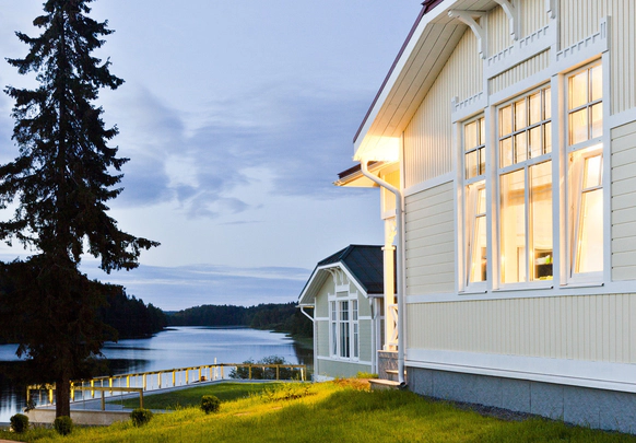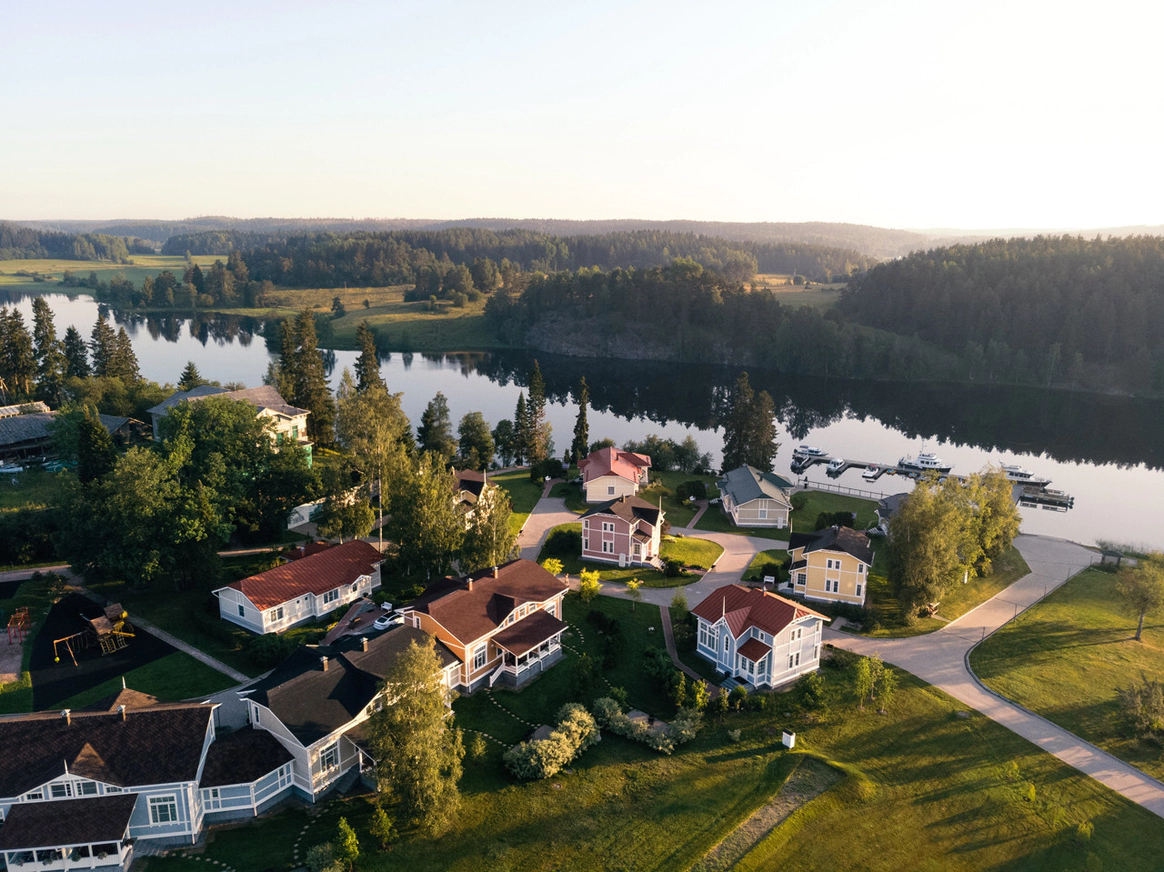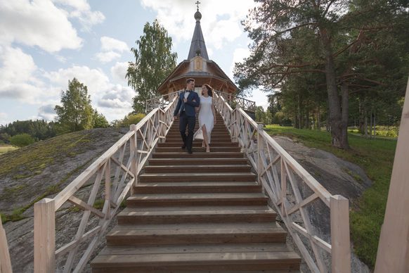 «Ладожская Усадьба» – старинное поместье на берегу живописного залива в Карелии Аристократичные залы ресторана с изумительной кухней Северного Приладожья, просторные коттеджи в стиле «северного модерна», собственный флот, вертолетная площадка и даже церковь для проведения таинства венчания – каждая деталь олицетворяет роскошь и безупречный вкус. Гостиница находится в трех часах поездки от культурной столицы. Собственный парк фирменных микроавтобусов Mercedes-Benz позволит организовать комфортабельный трансфер в отель для молодоженов и их гостей. Для тех, кто ценит свое время, есть возможность добраться до Усадьбы всего за 40 минут на вертолете. Желающим насладиться удивительной красотой Ладожских шхер организуют восхитительный 6-часовой круиз на персональной яхте. Ресторан «LADOGA» — гармонично сочетает старинные элементы в дизайне и высокую кухню. Лесные грибы, запеченные в сливках, кулебяка из судака с соусом из красной икры, утиная грудка, обжаренная на гриле с соусом из ягод, домашние десерты – все лучшее Северного Приладожья. Концепция ресторана, сочетающая в себе уютный простор, многообразие зон для отдыха и открытую террасу, позволит разместить до 100 гостей. В Усадьбе ценят культуру досуга. Просторный банный комплекс с собственной купелью в водах Ладоги, spa-программы, развлекательный гостиничный комплекс с бильярдом и боулингом, разнообразная экскурсионная программа – лишь малая часть того, что Усадьба может предложить своим гостям.