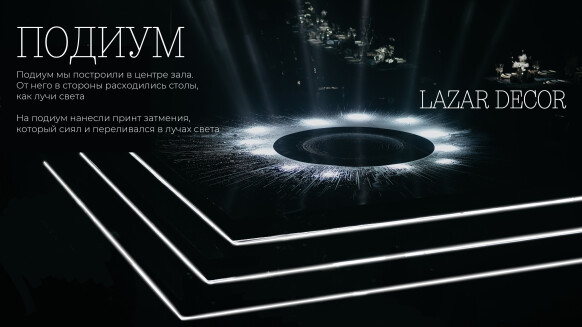 Я, Ирина Лазарь создатель и идейный вдохновитель студии Lazar Decor Нам 10 лет, и мы входим в топ лучших декораторов России Многолетняя насмотренность и опыт в сфере Event декора позволяет реализовывать проекты превышающие ожидания Проникаем в сознание наших заказчиков и визуализируем мечты в декоре Отличаемся высокой̆ скоростью и качеством реализации масштабных проектов