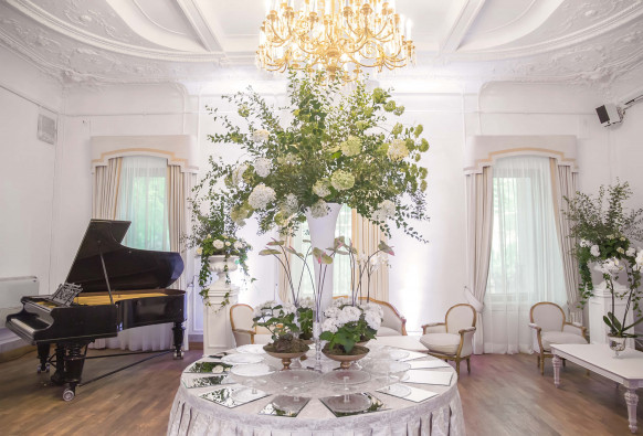 Особняк в Гранатном переулке, более известный как «Дом архитектора», был построен в 1896 году для Анны-Луизы Леман – супруги почетного гражданина, банкира Роберта Лемана. Готический стиль и аутентичное внутреннее убранство здания — прекрасная декорация как для классической, так и для концептуальной и современной свадьбы. В особняке «Леман» есть просторный банкетный зал с белоснежными стенами, изысканными люстрами, колоннами в барельефах и витражом. Интерьер зала позволяет воссоздать любую креативную задумку. На первом этаже также расположена просторная белая гостиная со старинным камином и роскошной лепниной на стенах и потолке, объединенная с более камерной розовой гостиной. Они подойдут для небольших уютных мероприятий или фуршета рядом с большим банкетным залом. Украшение особняка – сохранившаяся деревянная лестница, которая ведет на второй этаж и служит местом для фотоссессии и свадебной церемонии. На втором этаже в арочной галерее находится синяя гостиная с белыми колоннами и антикварными канделябрами. Безукоризненную красоту готического интерьера синей гостиной дополняют три стрельчатых окна. На втором этаже также расположен большой концертный зал, интерьер которого выдержан в классическом стиле: белые потолки с лепниной, балюстрада с колоннами над линией окон и большие скульптурные рельефы с изображением древнего римского города — главная особенность зала. Кинозал рассчитан на 150 человек и расположен на третьем этаже особняка. Он объединен с выставочным залом, имеет стационарную сцену, оснащен удобными мягкими креслами, большим экраном, комплектом мультимедиа и звукового оборудования. В новой части особняка расположен выставочный зал, рассчитанный на 500 человек. Он был открыт после реконструкции в 2013 году и представляет собой просторную, светлую площадку со сценой и потолочным освещением. Зал не имеет внутренних колонн и перегородок, что легко позволяет размещать стенды и крупногабаритный декор, а также зонировать пространство.