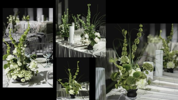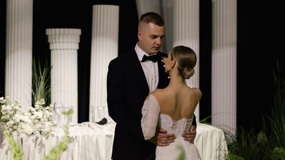 Центральной идеей декора стали колонны и античные элементы, отсылающие к эпохе Древней Греции и символизирующие прочность и вечность союза двух сердец. Живые и искусственные растения в оттенках свежей зелени привнесли природную гармонию, напоминая о райских садах богов.