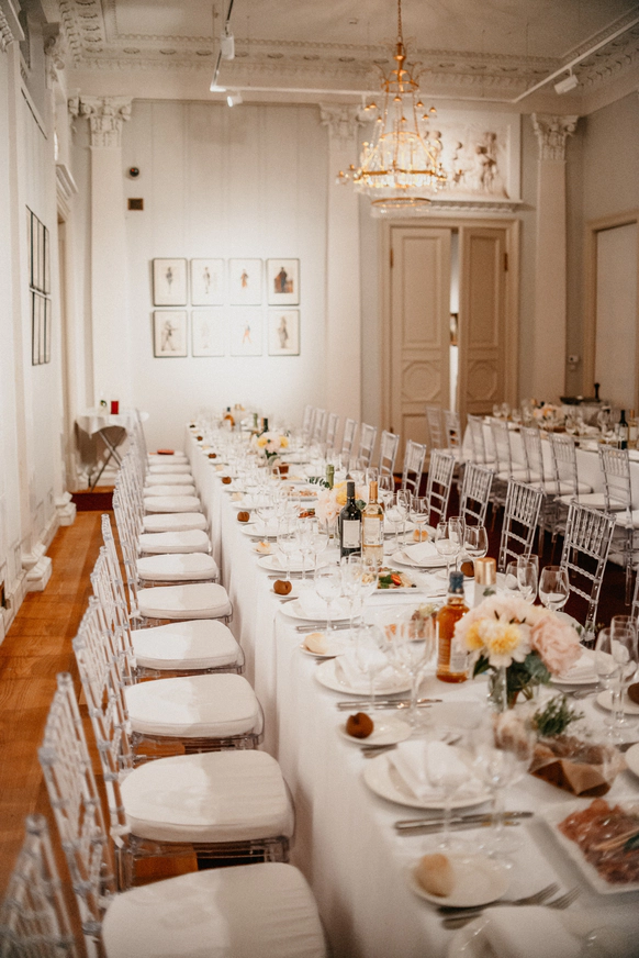 Историческая усадьба Муравьёвых-Апостолов, расположившаяся на Старой Басманной, в самом сердце старой Москвы, с первого взгляда покоряет сердце. Презентабельная снаружи и не менее красивая внутри, усадьба вызывает желание остаться здесь жить, ну или, как минимум, запечатлеть себя в истории дома, проведя здесь свое событие! Усадьба Муравьёвых-Апостолов – это место с уникальной историей, восстановленная потомком знаменитых декабристов Кристофером Муравьёвым-Апостолом, сегодня стала местом с особым статусом и неповторимой атмосферой, здесь проходят светские приемы, презентации всемирно известных брендов (Louis Vuitton, Bulgari), фотосьёмки и камерные свадьбы. Утонченные аристократичные интерьеры парадного этажа, созданные в начале XIX века, сменяются старинными палатами XVIII века, расположившимися на цокольном этаже. Благодаря подлинной научной реставрации, все залы усадьбы сохранили свой первоначальный облик, сохранились оригинальные печные изразцы, утонченная лепнина и роскошные изумрудного цвета колонны, погружая гостей в атмосферу роскоши и гостеприимства исконно русского дворянского дома. Залы усадьбы расположены анфиладой, свойственной дворцам и усадьбам начала XIX века, то есть один зал перетекает в другой, позволяя гостям свободно перемещаться и максимально задействовать пространство. Таким образом, в одном месте можно провести выездную регистрацию, фотосьёмку и камерный банкет. Стоит отметить, что комфортная банкетная вместимость до 70 гостей, однако, мы видим тренд, что все больше пар отдают предпочтение свадьбе в формате фуршет, которая так популярна в Европе, в таком случае можно разместить до 200 гостей. Приятным дополнением станет внутренняя приусадебная территория, где в летнее время можно организовать зону welcome, выездную регистрацию или зону отдыха гостей. Особое внимание уделяется качеству сервиса и кухни, которая, к слову, очень разнообразна и встретит ожидания даже самого взыскательного гостя. Усадьба на Старой Басманной является безусловным украшением Москвы, проведя мероприятие в которой вы подчеркнете свой статус, а гости погрузятся во времена, когда Россия была еще Царской, а любое событие отмечалось с особым размахом.
