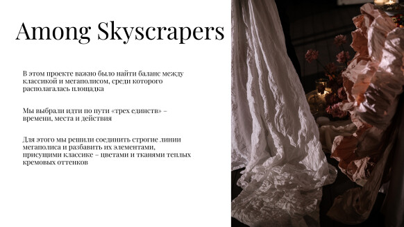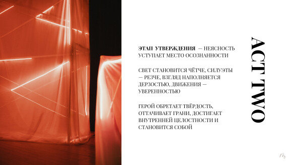 Основная идея – соединить конструктивизм, легкость и дерзость, подчеркнув, как одно и то же пространство может раскрывать совершенно разные состояния человека через свет и смену образа.